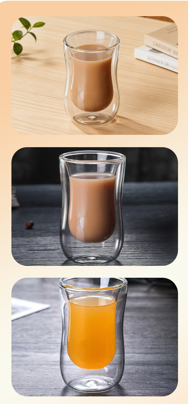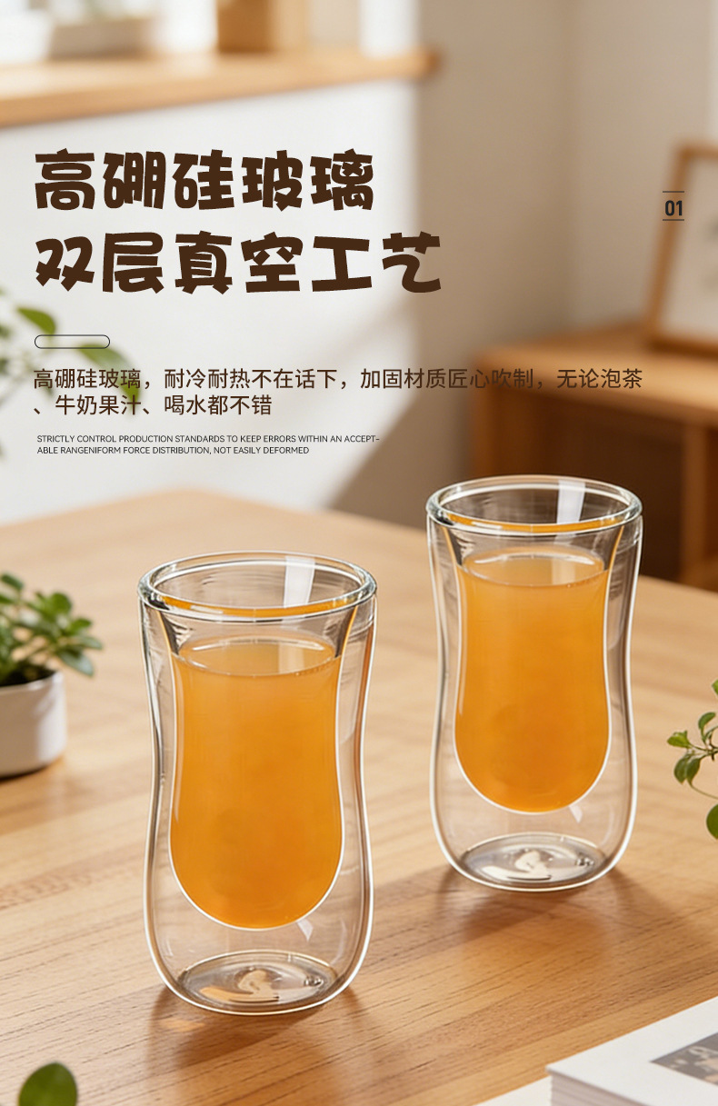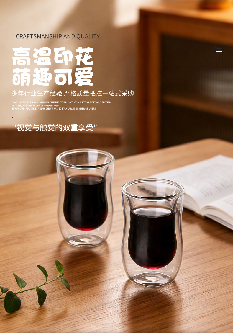 定制双层玻璃杯椭圆形设计家用咖啡杯跨境供应创意伴手礼杯子