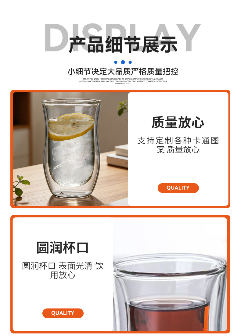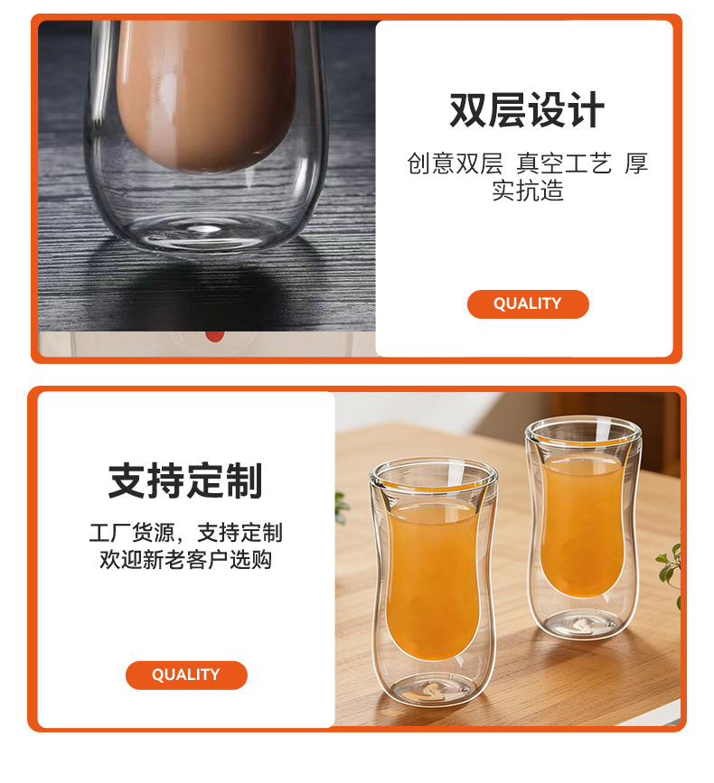 定制双层玻璃杯椭圆形设计家用咖啡杯跨境供应创意伴手礼杯子 投诉