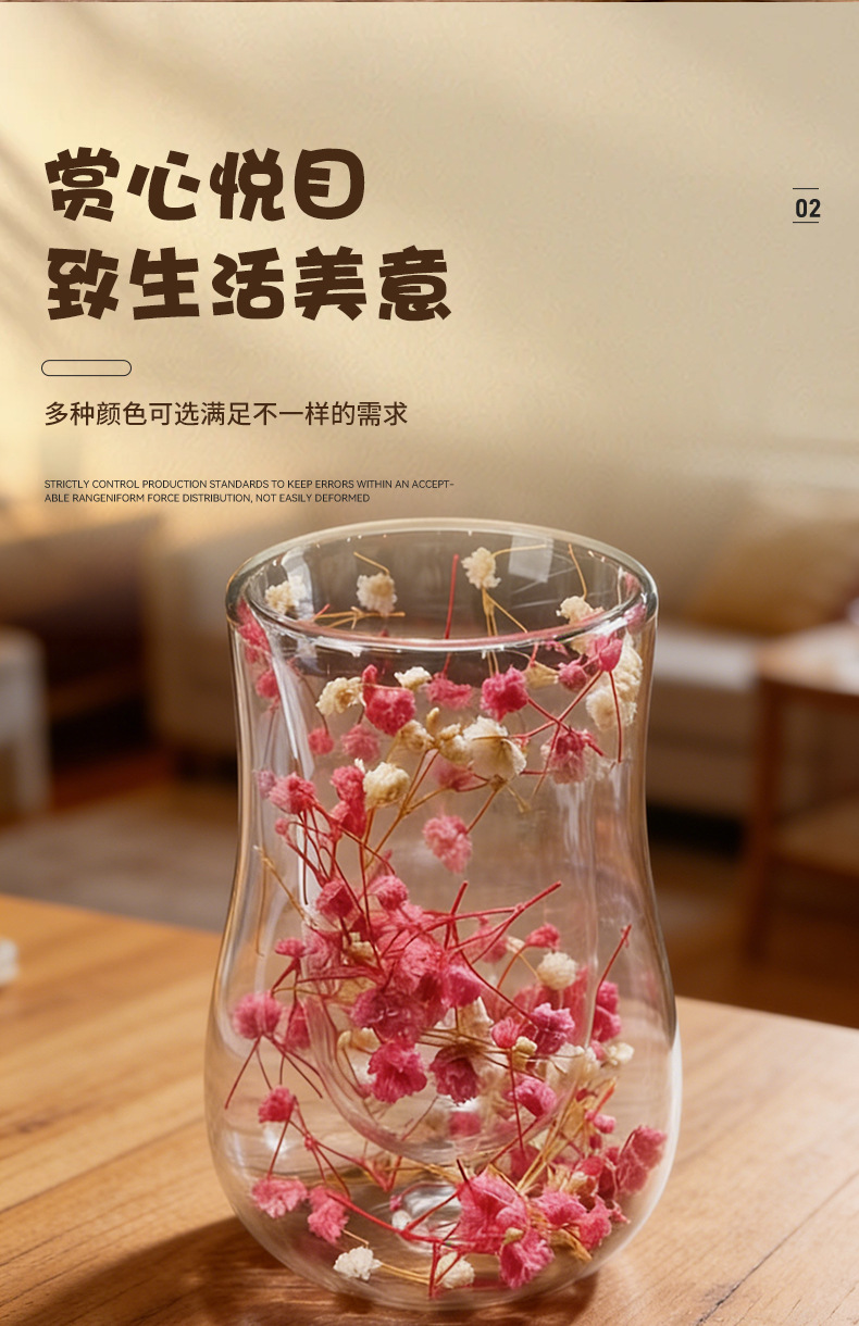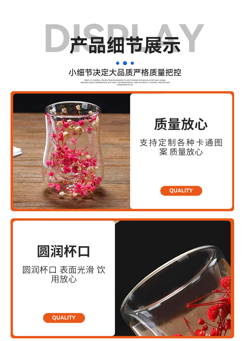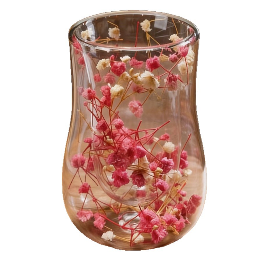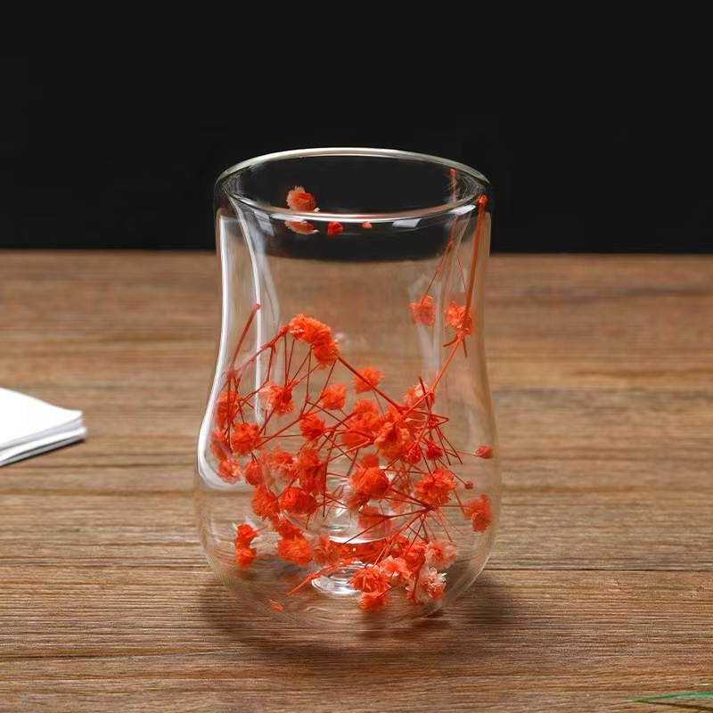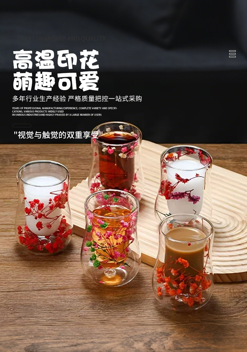 跨境高硼硅双层玻璃杯内置干花高颜值流沙干花隔热真花双层玻璃杯