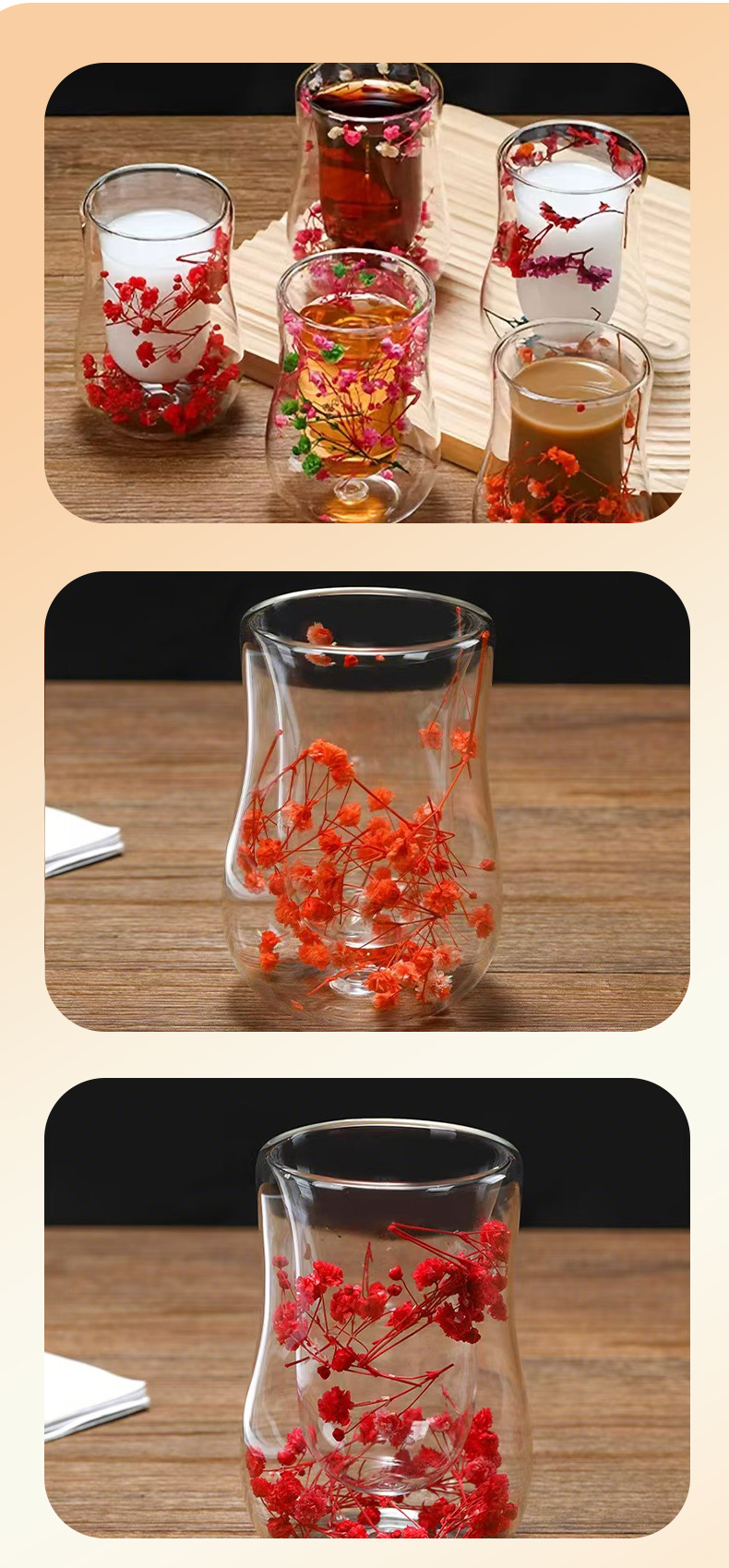 跨境高硼硅双层玻璃杯内置干花高颜值流沙干花隔热真花双层玻璃杯 投诉