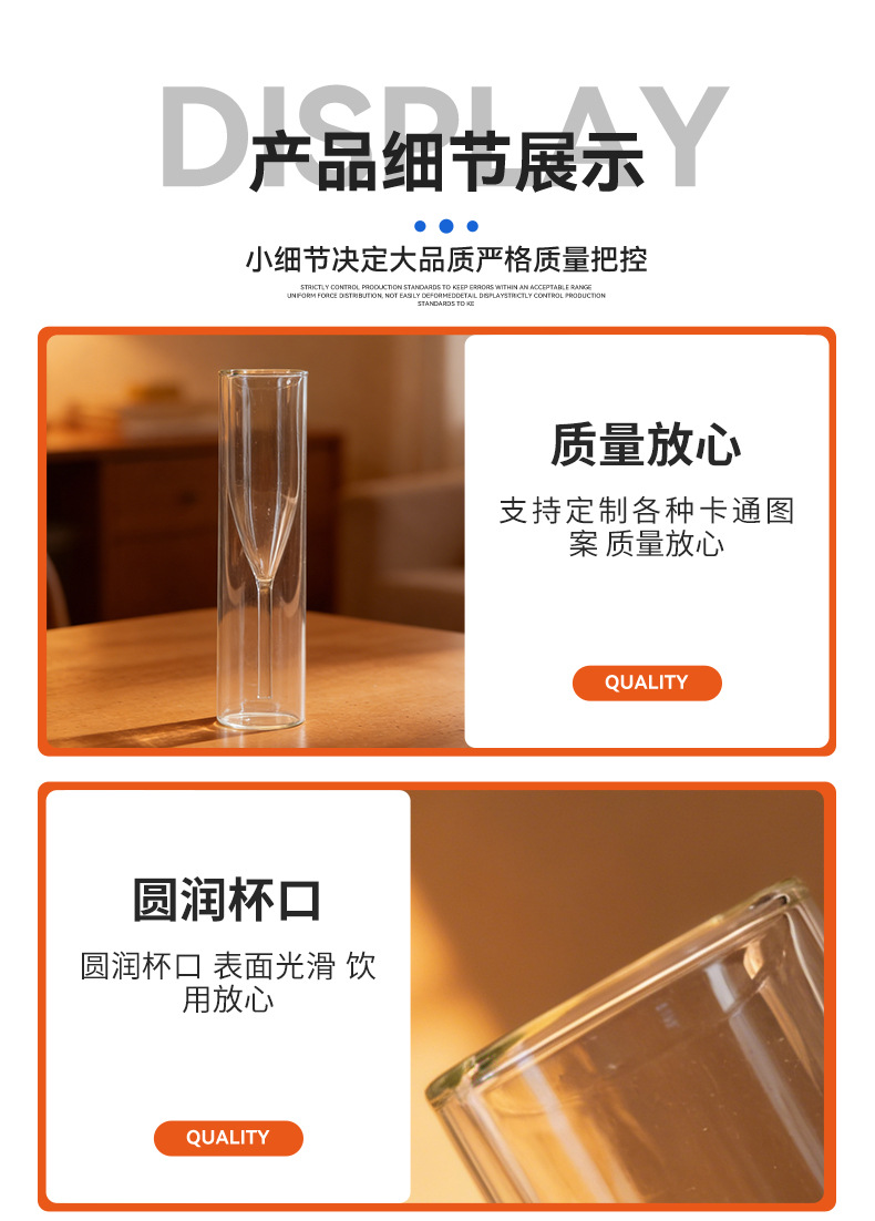 材质: 高硼硅玻璃 功能: 无 品牌: 其他 工艺: 人工吹制 产品类别: 双层玻璃杯 结构: 双层 风格: 创意 是否进口: 否 加印LOGO: 可以 货号: 双层玻璃香槟杯 适用场所: 酒吧 适用对象: 酒 图案: 纯色 形状: 圆形 适用人群: 通用 贸易属性: 内贸 适用送礼对象: 通用