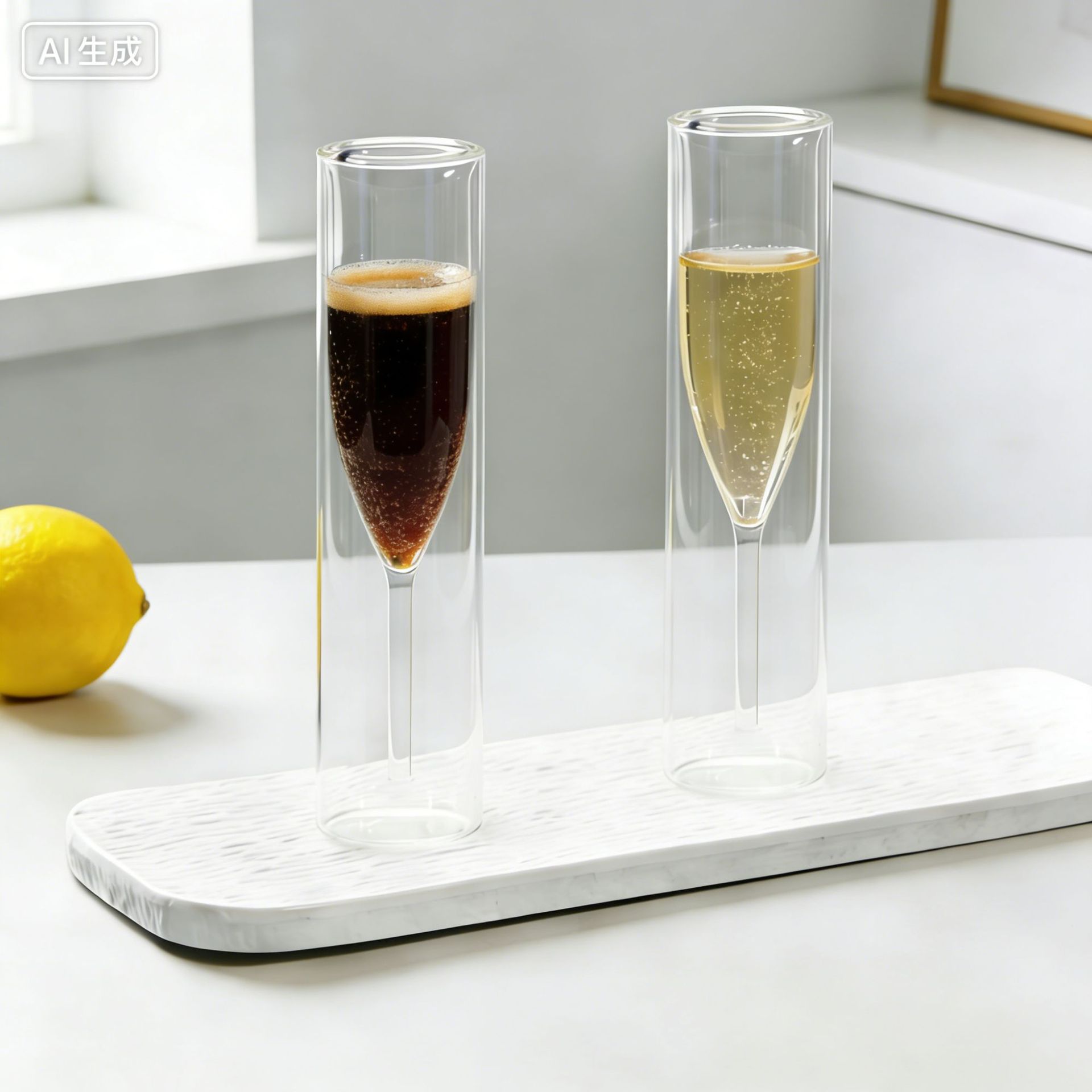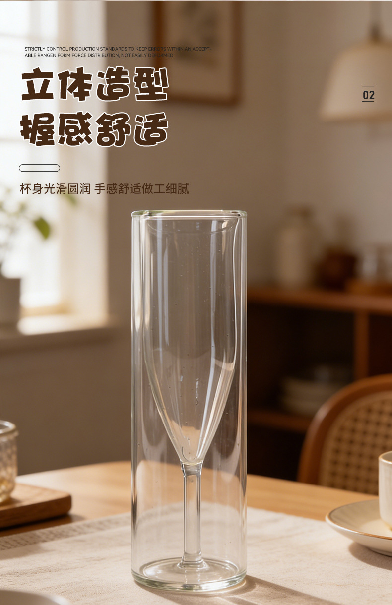 双层玻璃杯子香槟杯高级感水晶玻璃高脚起泡酒气泡甜酒