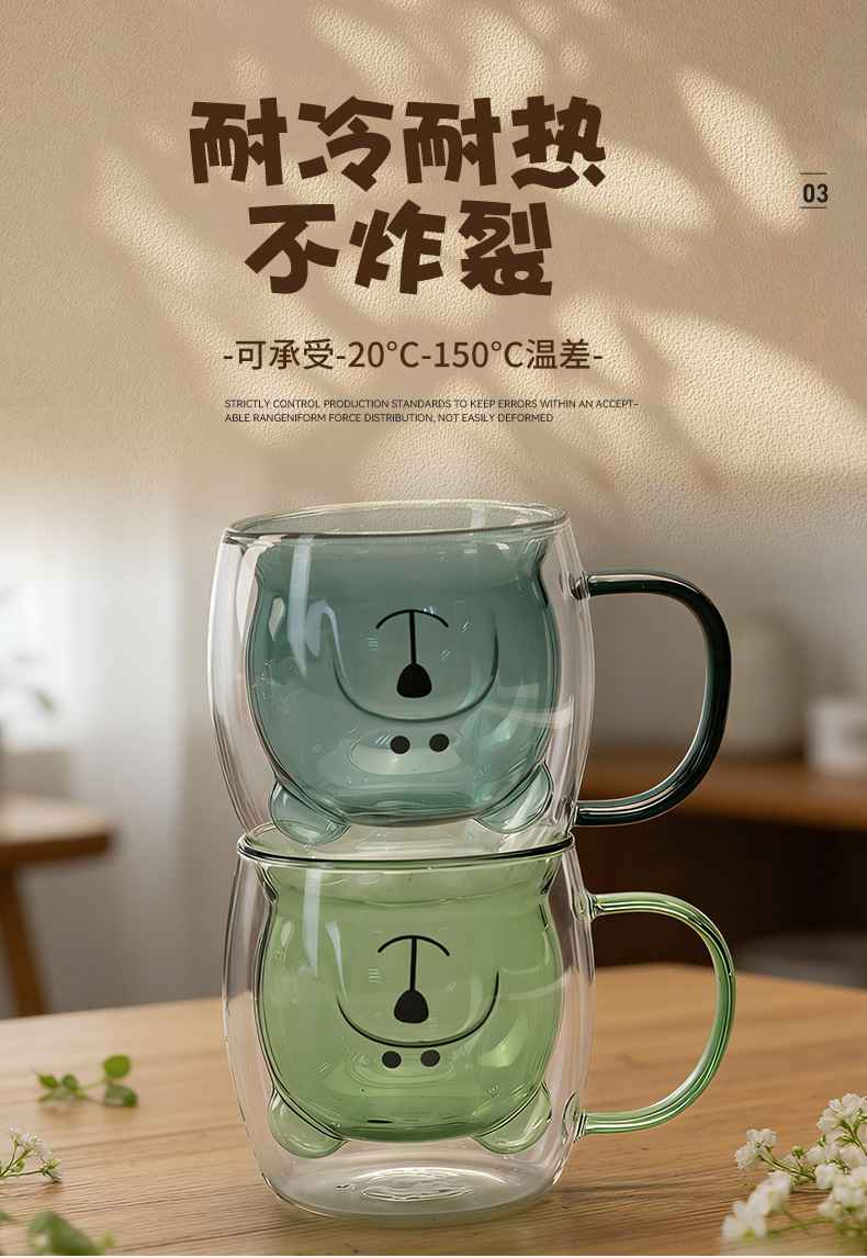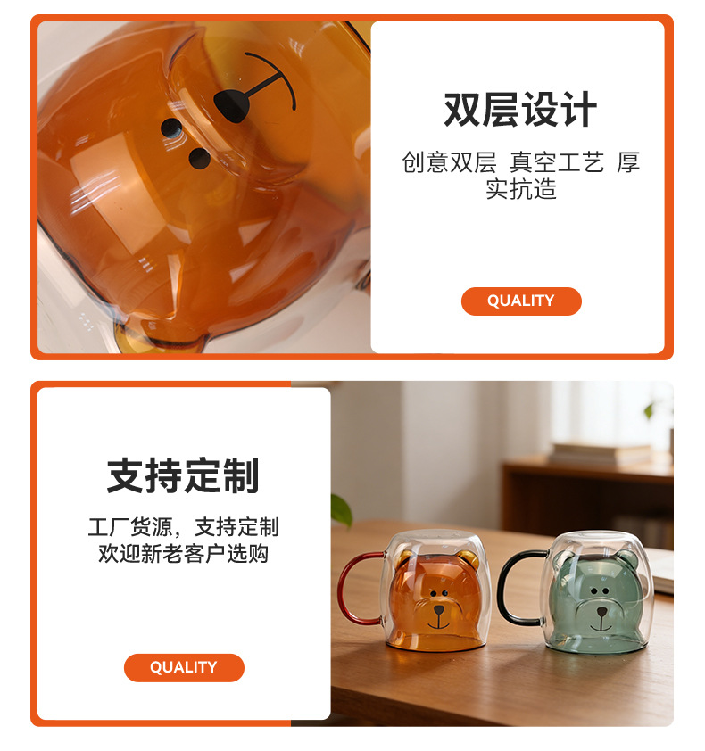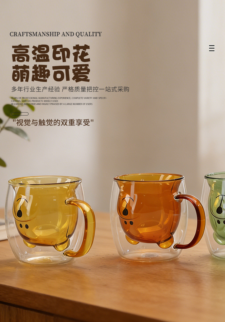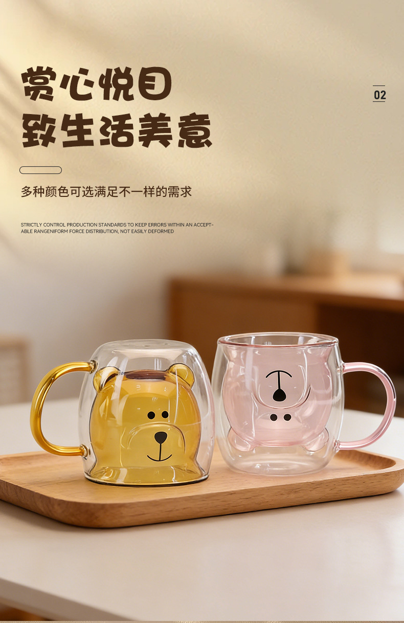 双层玻璃卡通杯家用高硼硅果汁杯奶茶杯透明小熊水杯双层玻璃杯
