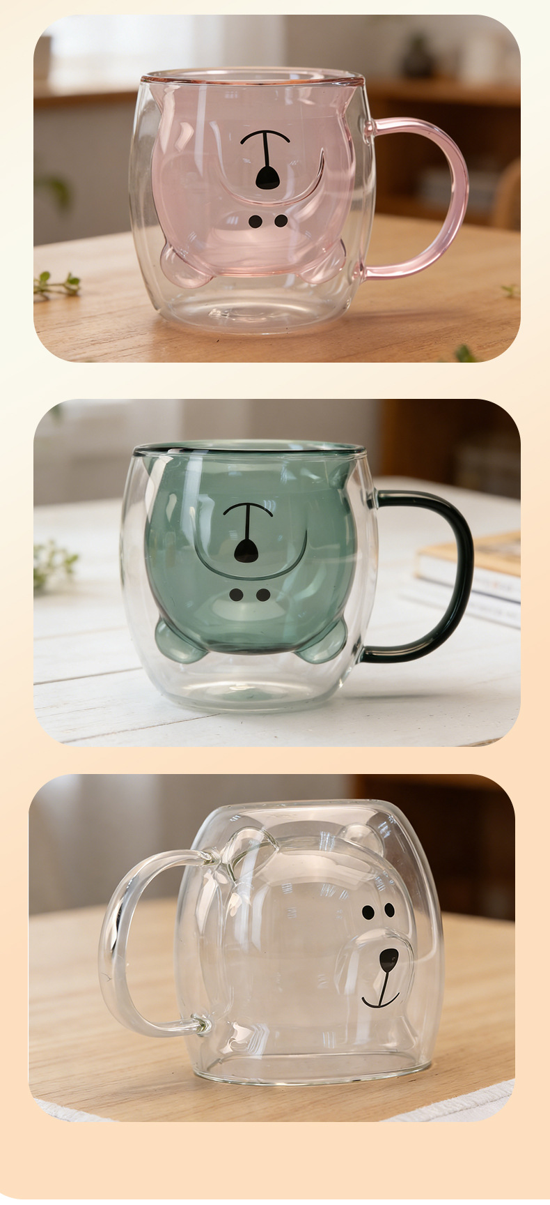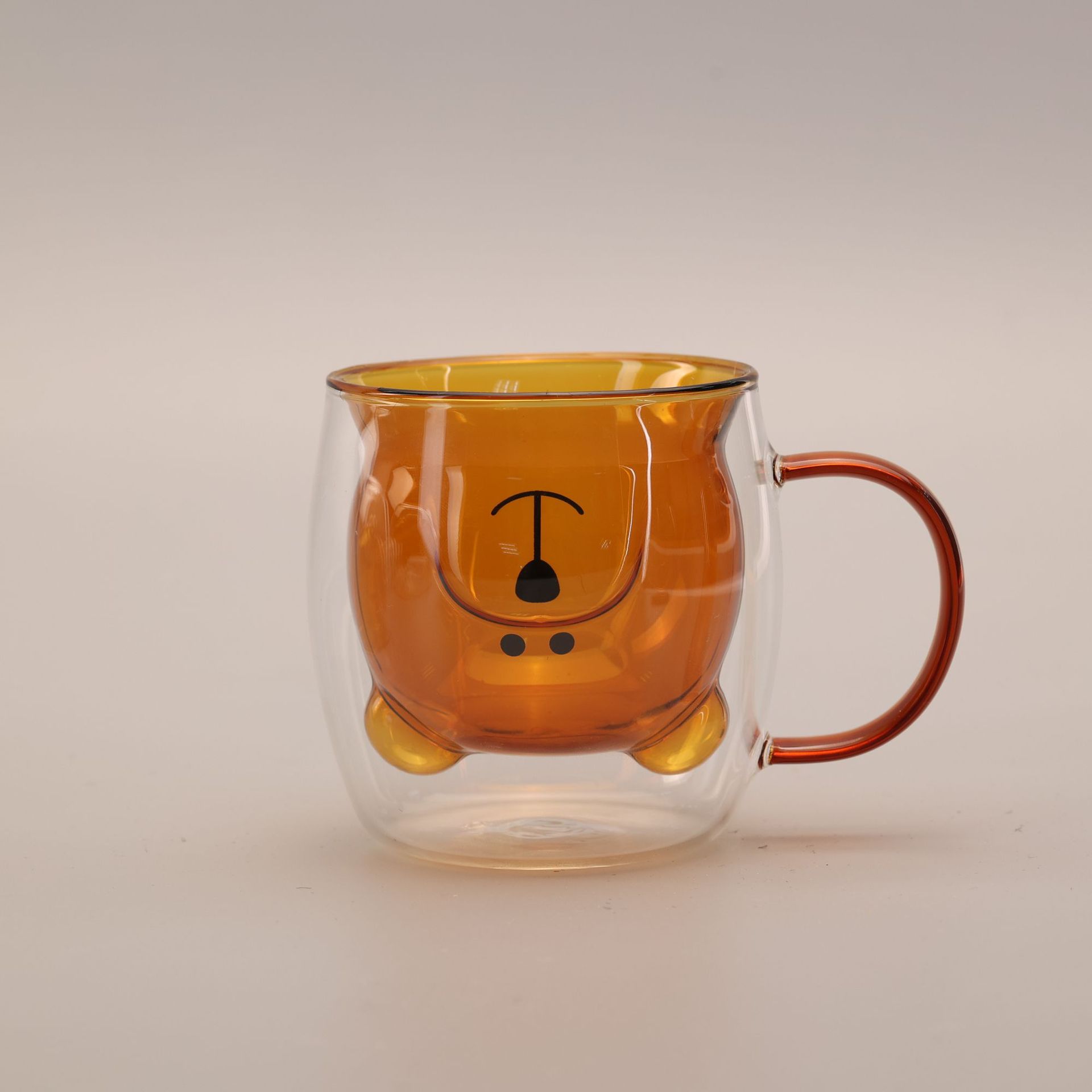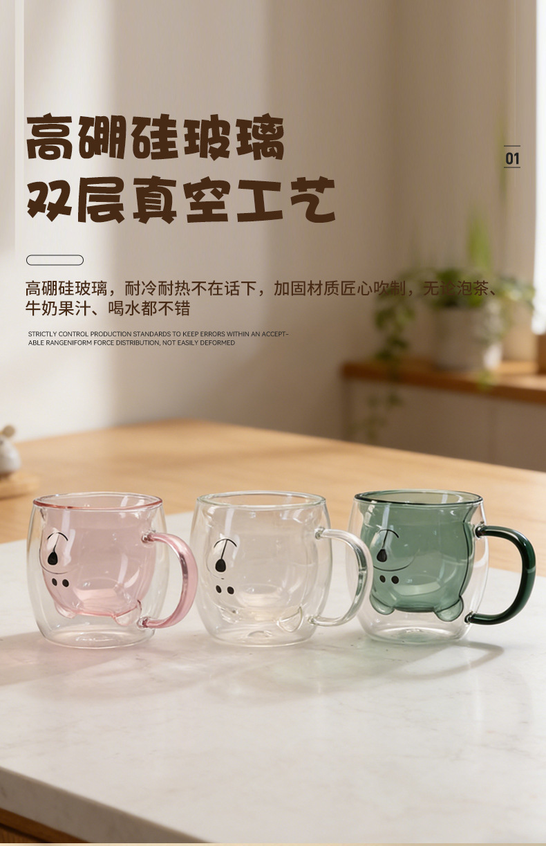 双层玻璃卡通杯家用高硼硅果汁杯奶茶杯透明小熊水杯双层玻璃杯