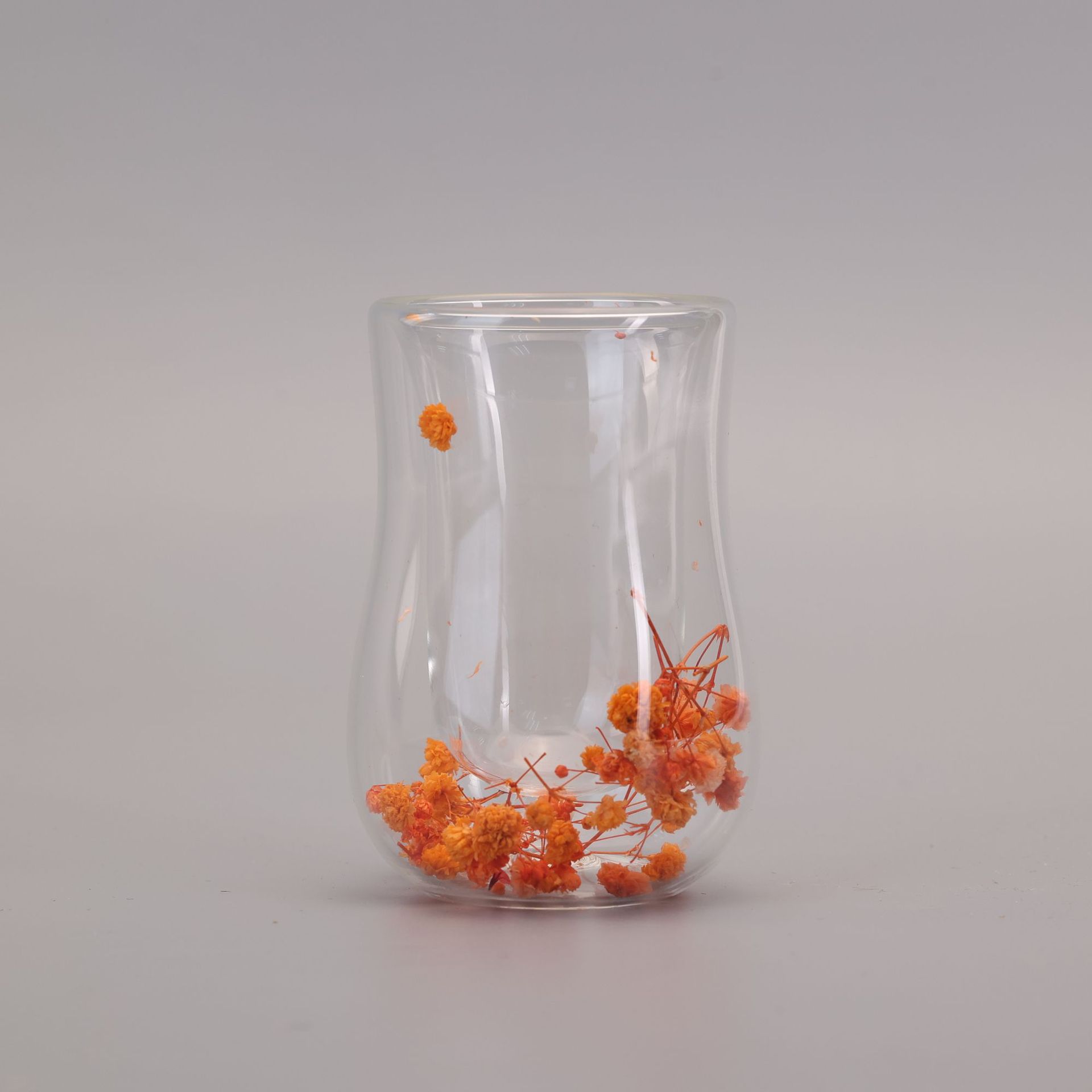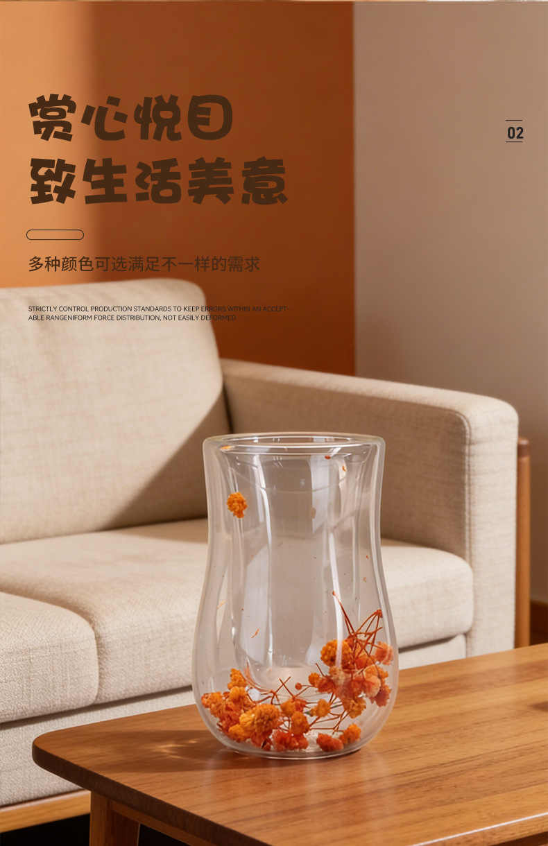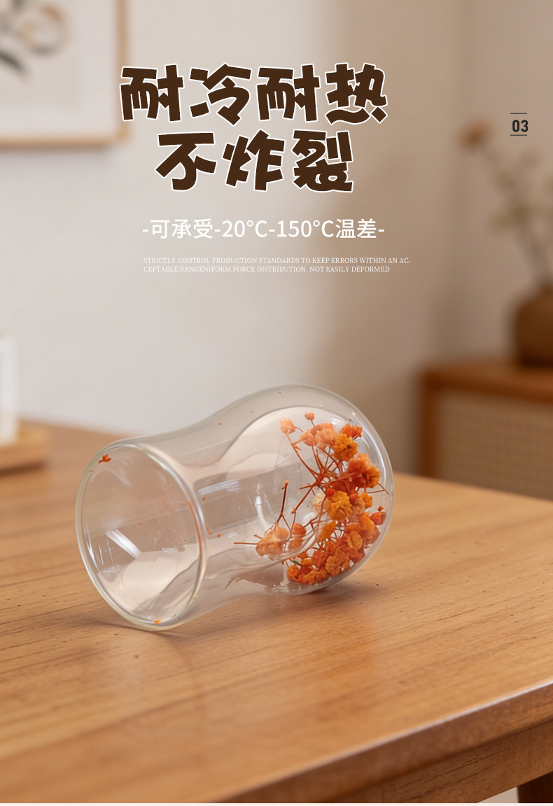 跨境高硼硅双层玻璃杯内置干花高颜值流沙隔热真花高硼硅大容量