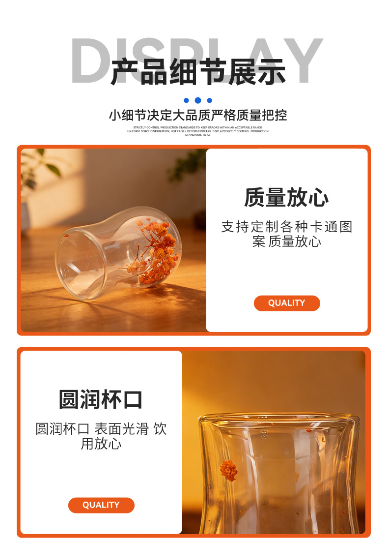 跨境高硼硅双层玻璃杯内置干花高颜值流沙隔热真花高硼硅大容量 投诉