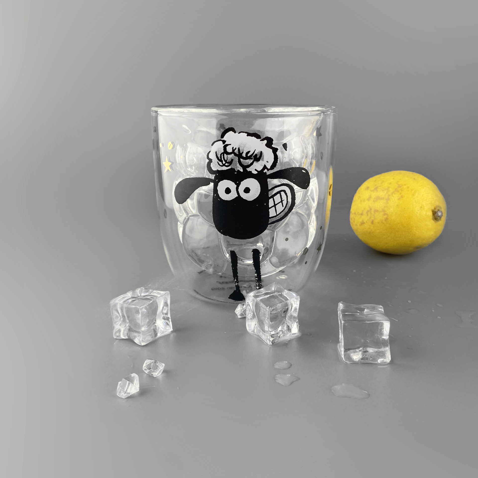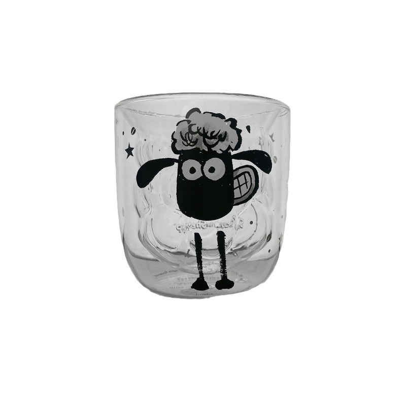 卡通小羊玻璃杯双层隔热防烫 送女朋友送孩子可爱杯子印花咖啡杯