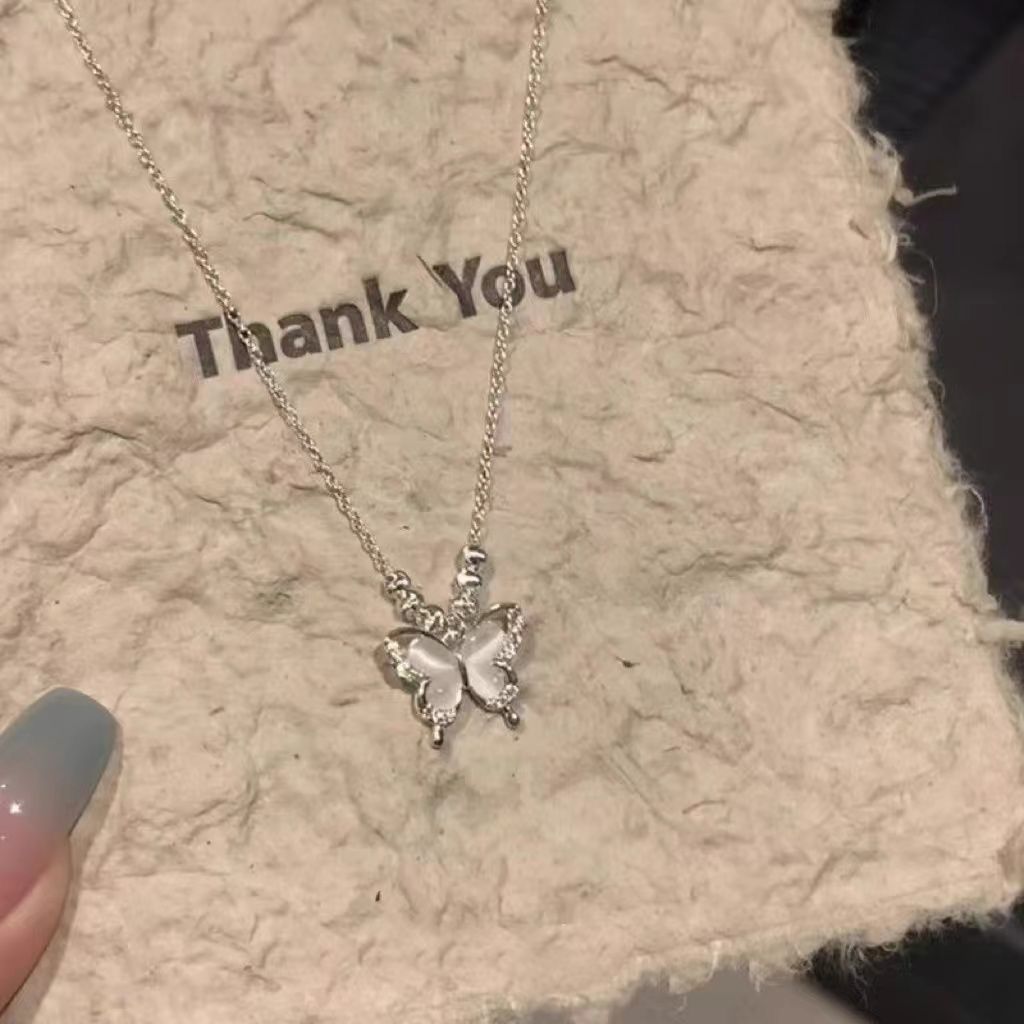 冷淡风冰透猫眼石蝴蝶项链精致高颜值配裙子锁骨链女