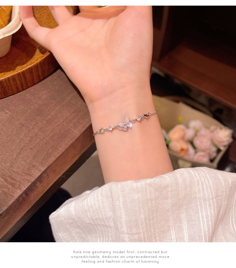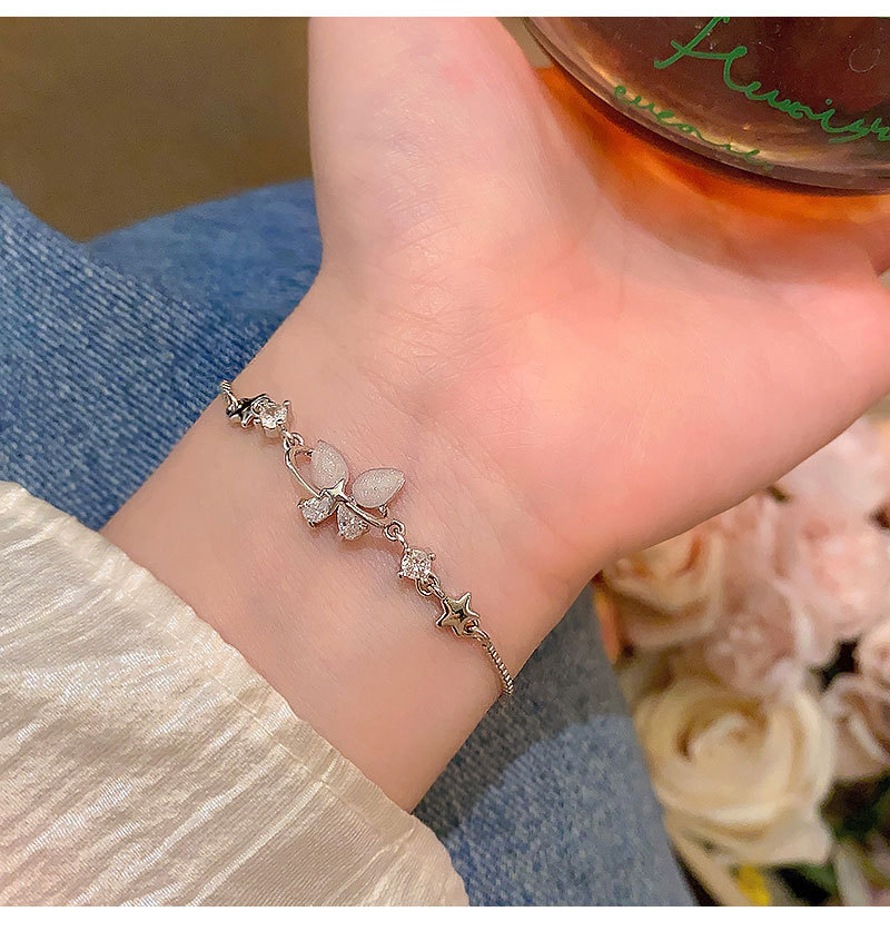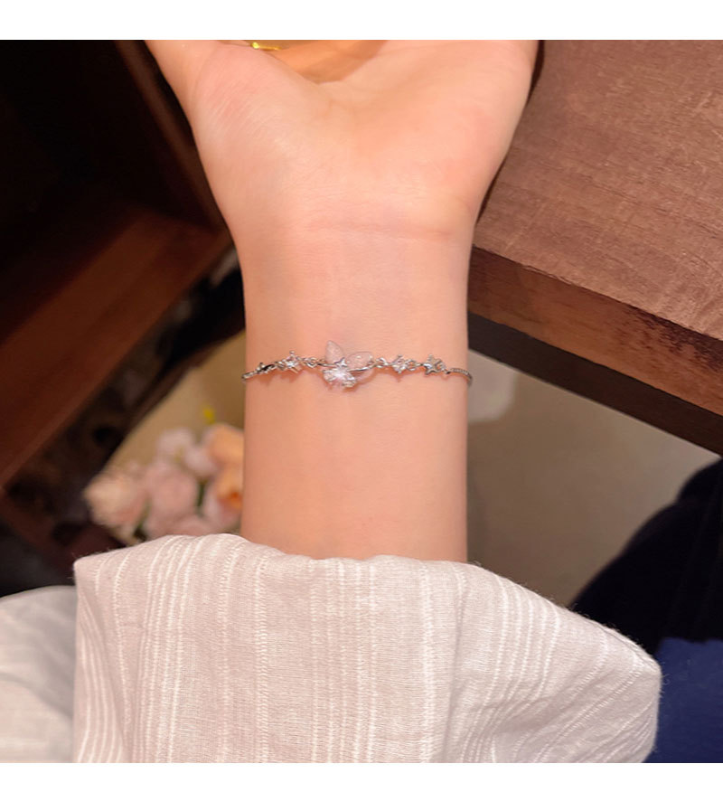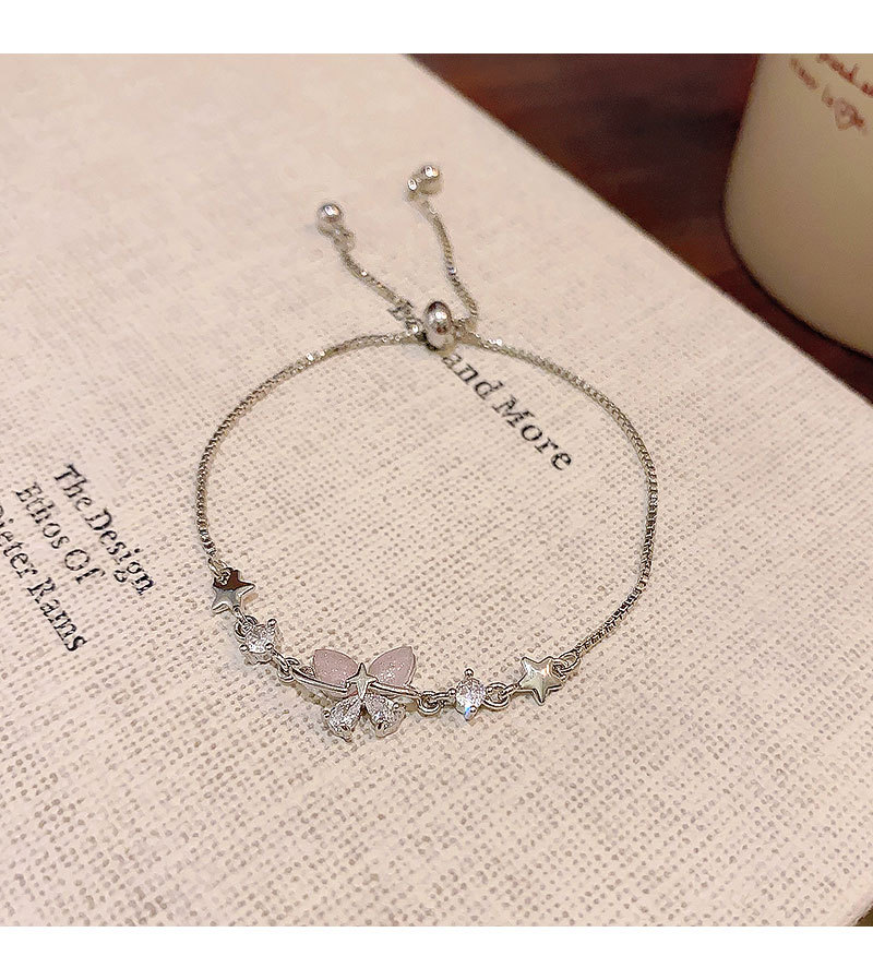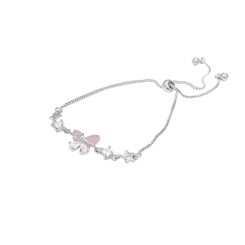 韩系精致锆石蝴蝶手链女生轻奢小众闺蜜学生手环抽拉式可调节手饰