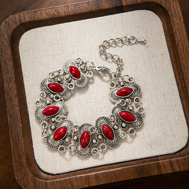 跨境热销个性复古绿松石手链波西米亚民族风手饰女轻奢气质手镯手饰品批发货源