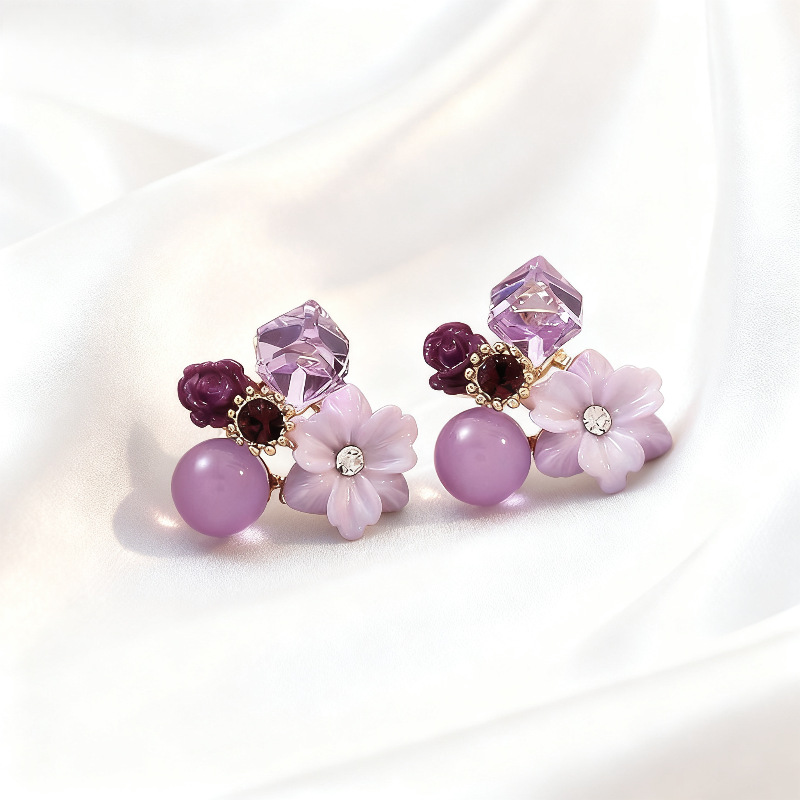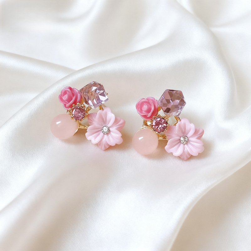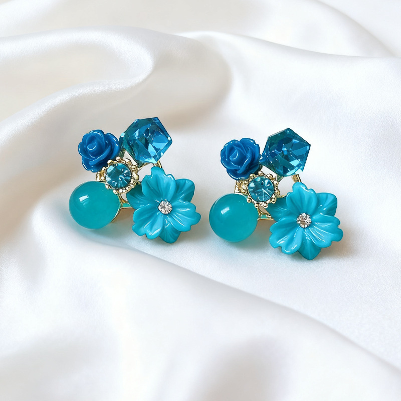 @特价@枫韵复古彩色花朵耳环女小众设计感2025年新款气质温柔耳钉 投诉