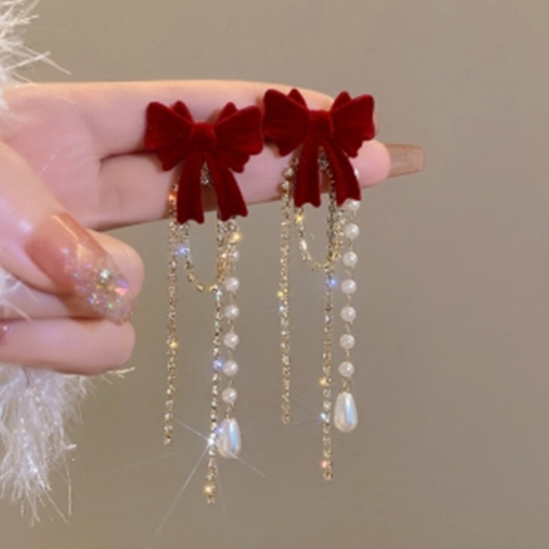 复古港风红色流苏耳环女高级感耳钉2024新款爆款过年耳坠秋冬耳饰