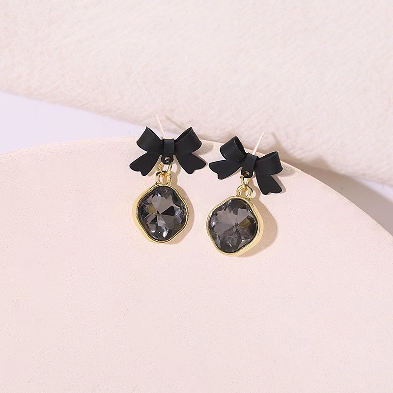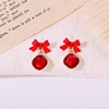 @特价@  红色蝴蝶结耳环女韩国冷淡风小巧锆石耳钉可爱森系耳饰品