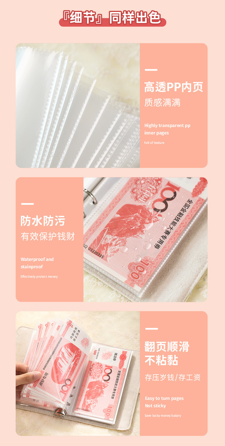 存钱夹钱册可放钱高颜值现金存钱本2024新款可放现金大容量收纳册 English | 投诉