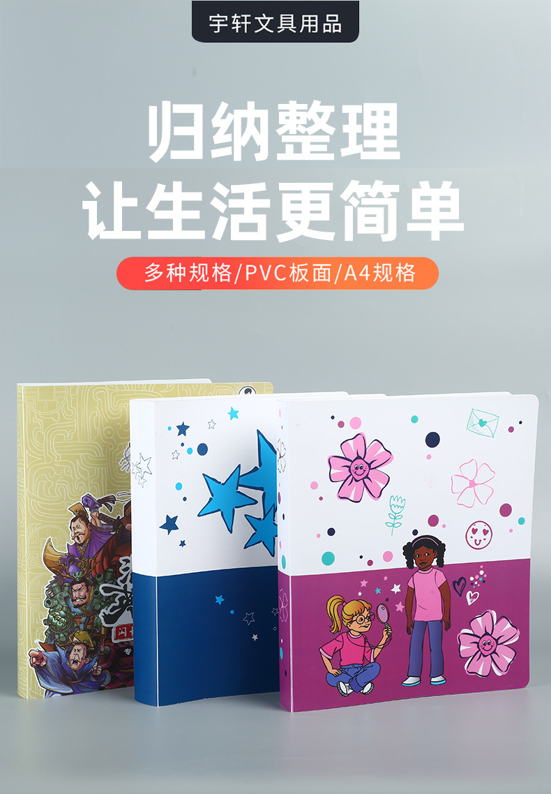 A4彩色塑料PP文件夹定制彩色UV印刷图案活页本资料夹文件收纳夹