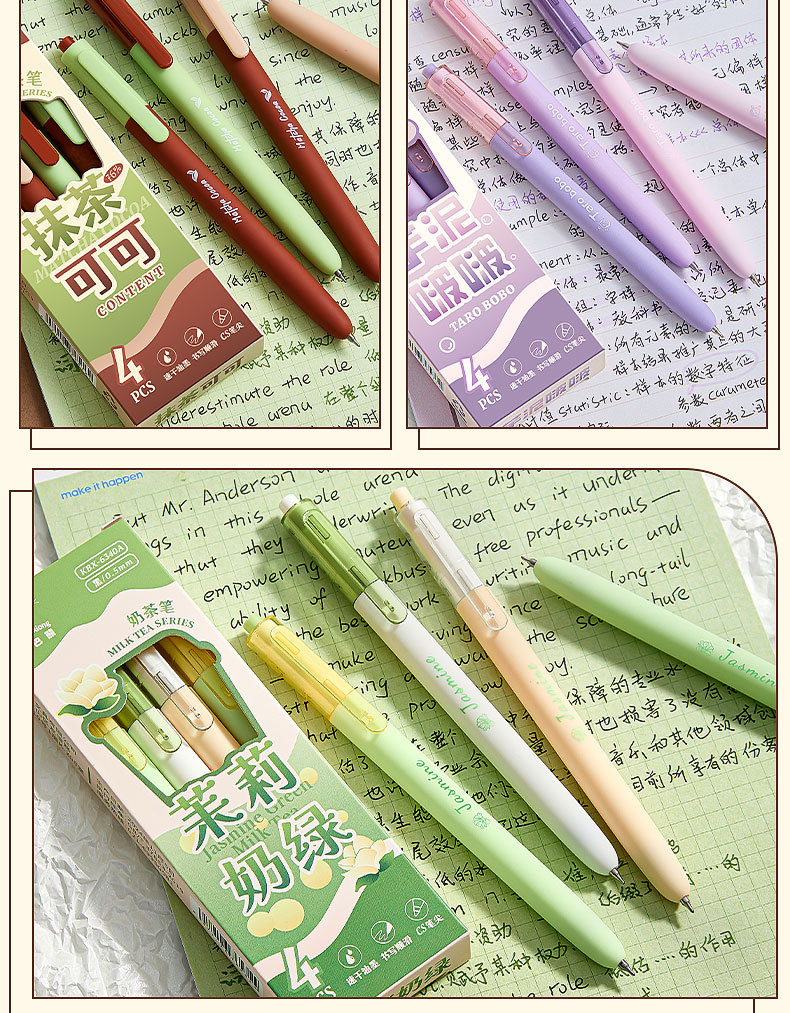 芋泥啵啵按动中性笔创意奶茶笔高颜值CS头速干黑笔签字笔圆珠笔芯