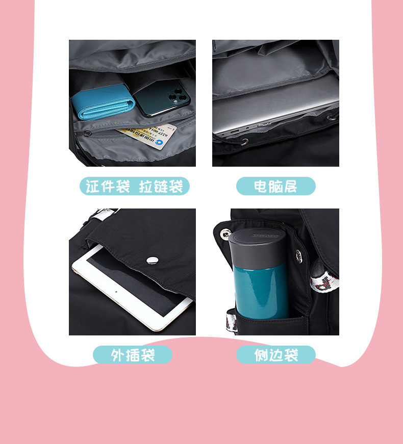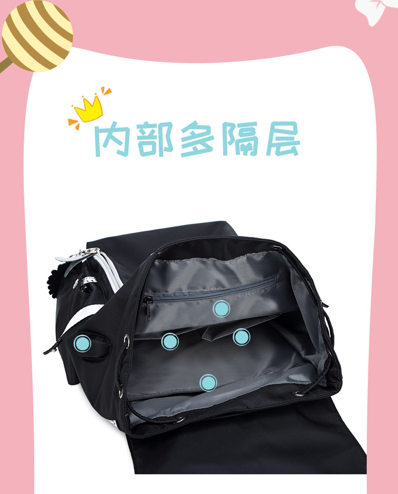 材质: 尼龙 里料质地: 涤纶 功能: 透气,防水,耐磨,减负,其他 风格: 街头潮流 开盖方式: 包盖式 品牌: 星星 流行元素: 花朵 颜色: 黑配银,经典黑色 货号: 0726-4 上市年份季节: 2025年春季 硬度: 中偏软 有无夹层: 有 适用场景: 休闲旅行 重量: 0.252 kg/个