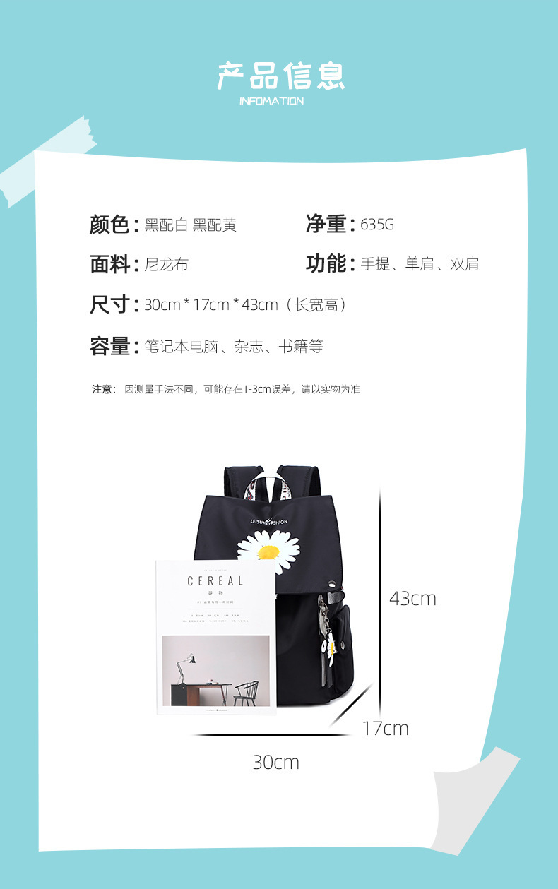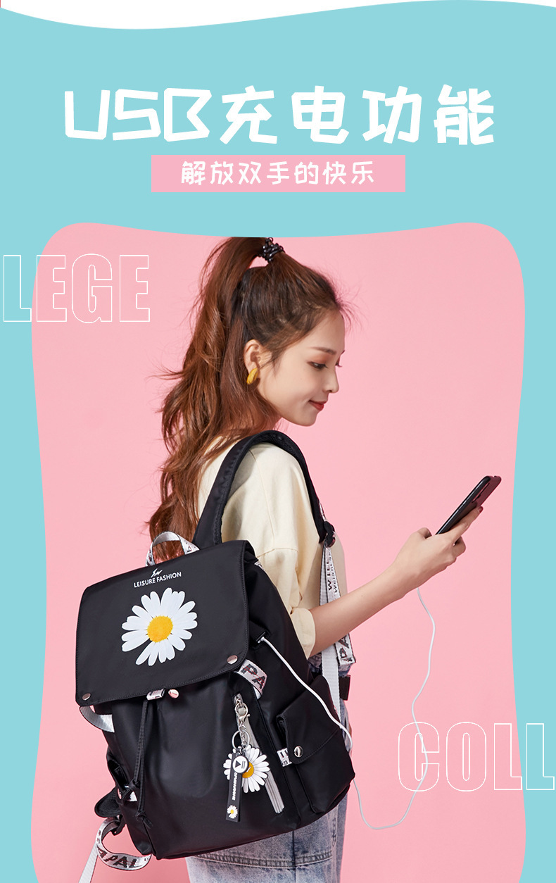女双肩包小雏菊跨境学生书包高中生潮流学生背包轻便大容量旅行包 English | 投诉