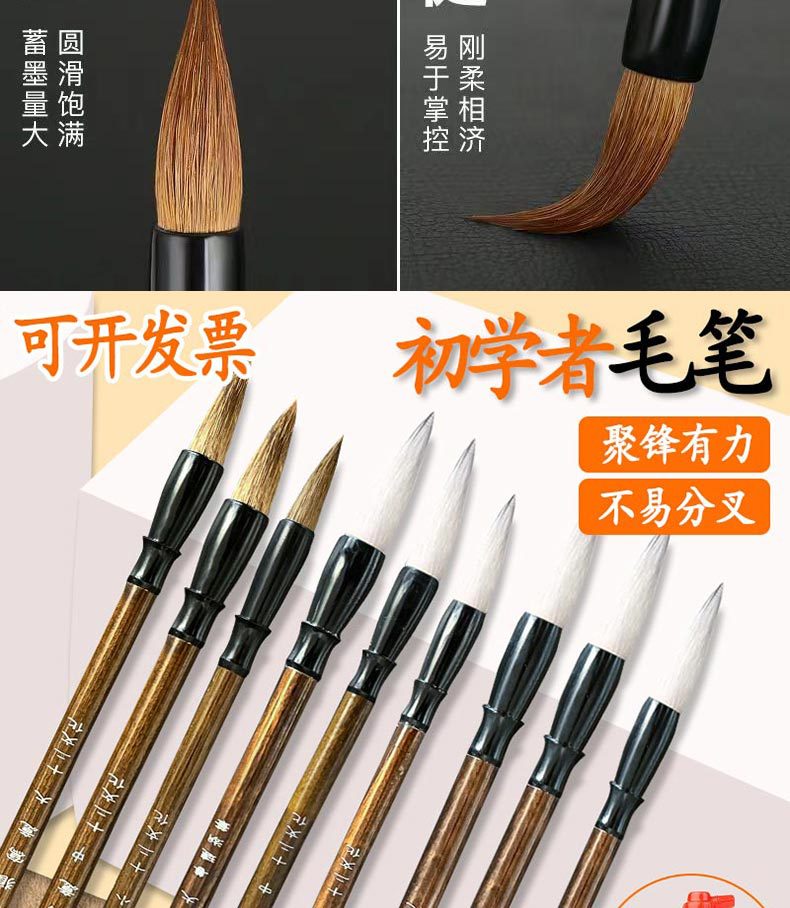 笔尖材质: 狼毫 品牌: 觅只熊 毛笔类型: 传统毛笔 笔杆材质: 木 货号: 狼毫兼毫毛笔 产地: 其他 型号: 学生毛笔 包装方式: 散装 贸易属性: 内贸 是否进口: 否 是否跨境出口专供货源: 否 是否属于礼品: 否 是否IP授权: 否 重量: 0.5 kg/支