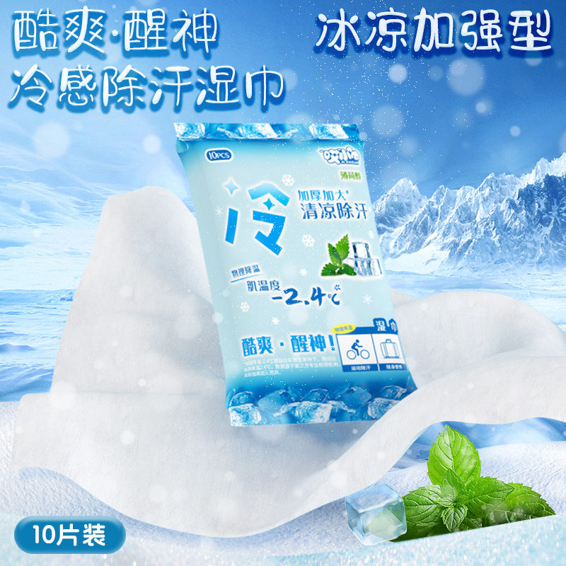 冰凉冷感湿巾开学季宿舍军训旅行降温去油擦汗脸便携湿巾纸10片装