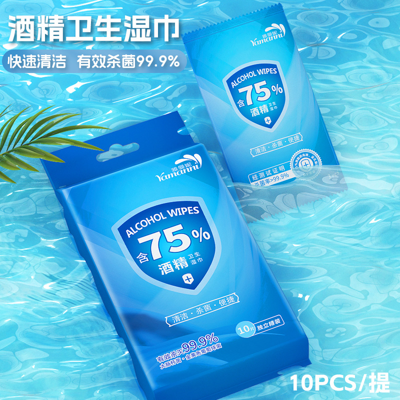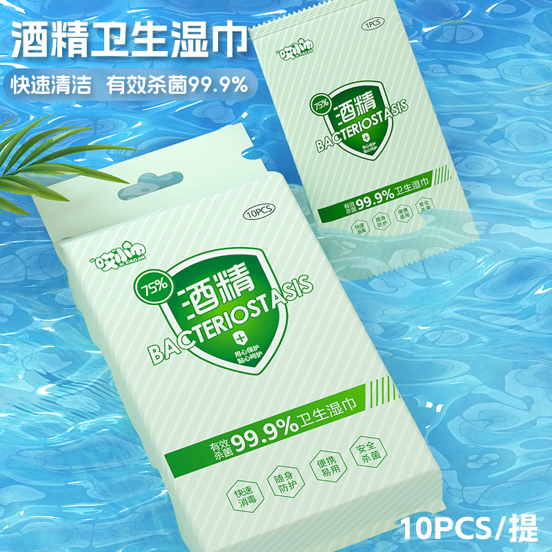 75酒精湿巾10片单片一提装清洁湿巾纸免洗杀菌湿巾儿童便携卫生品