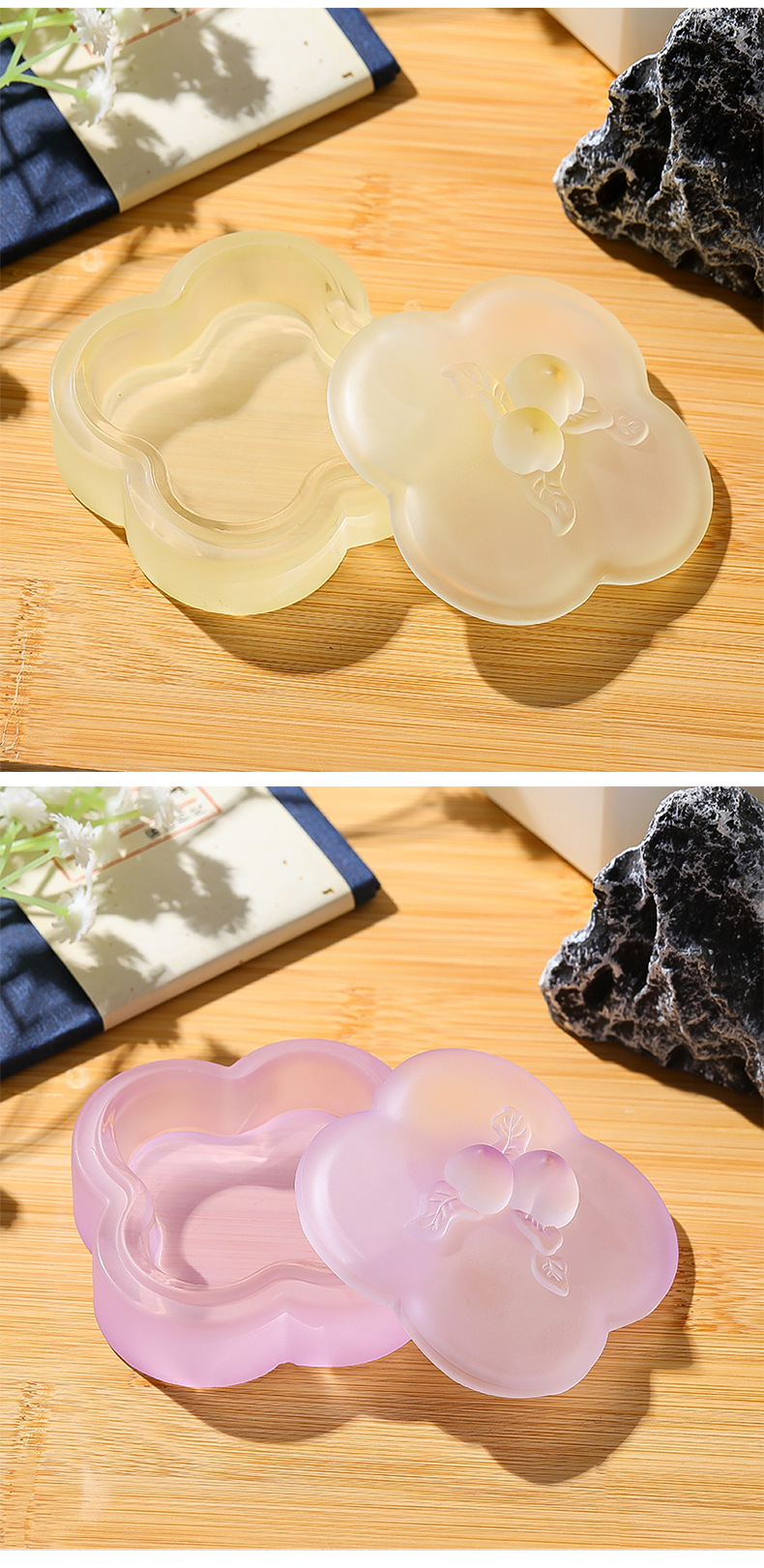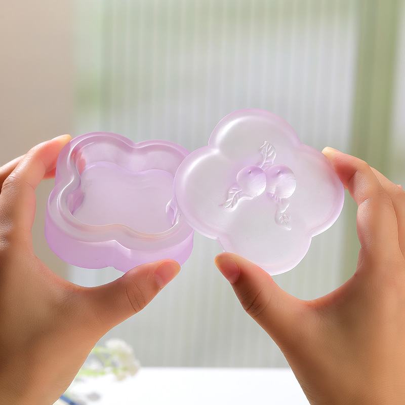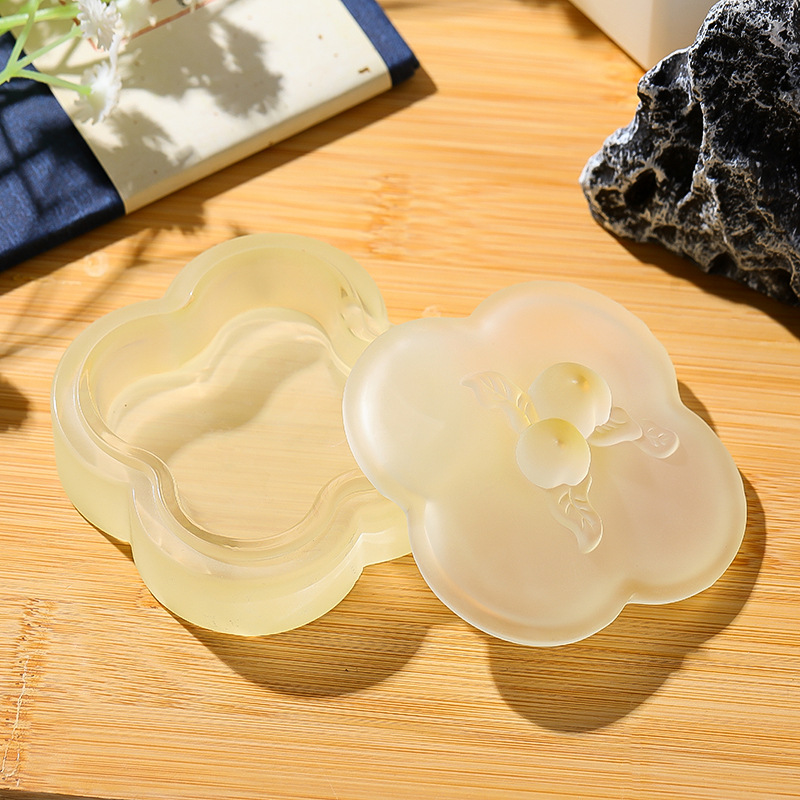 桃枝水晶琉璃墨盒印泥盒墨碟精桃子带盖保湿书法毛笔文房四宝