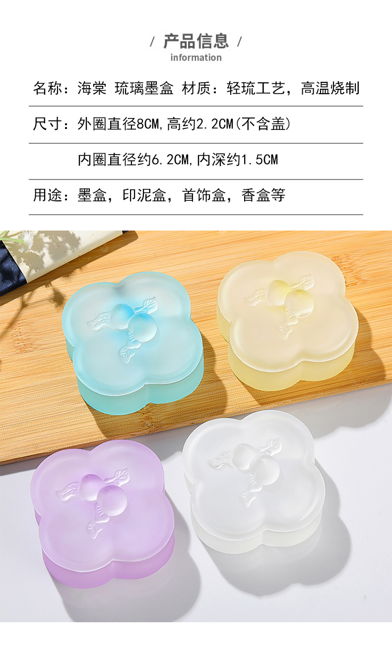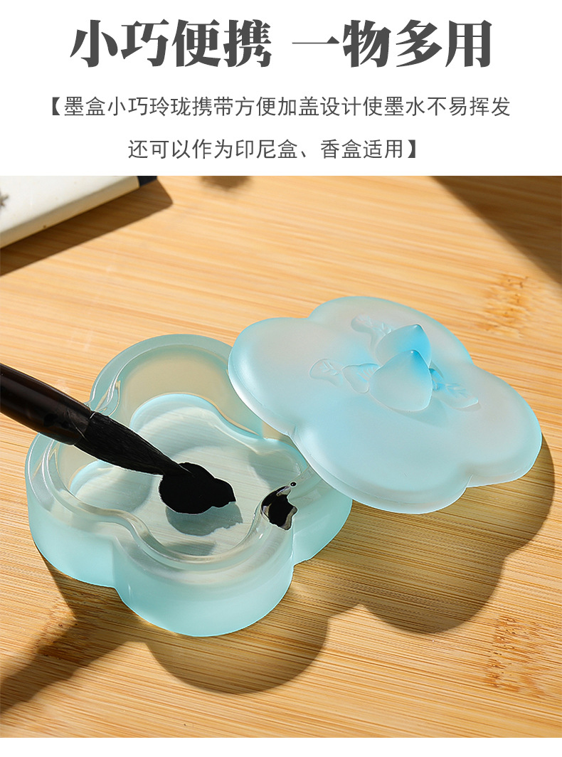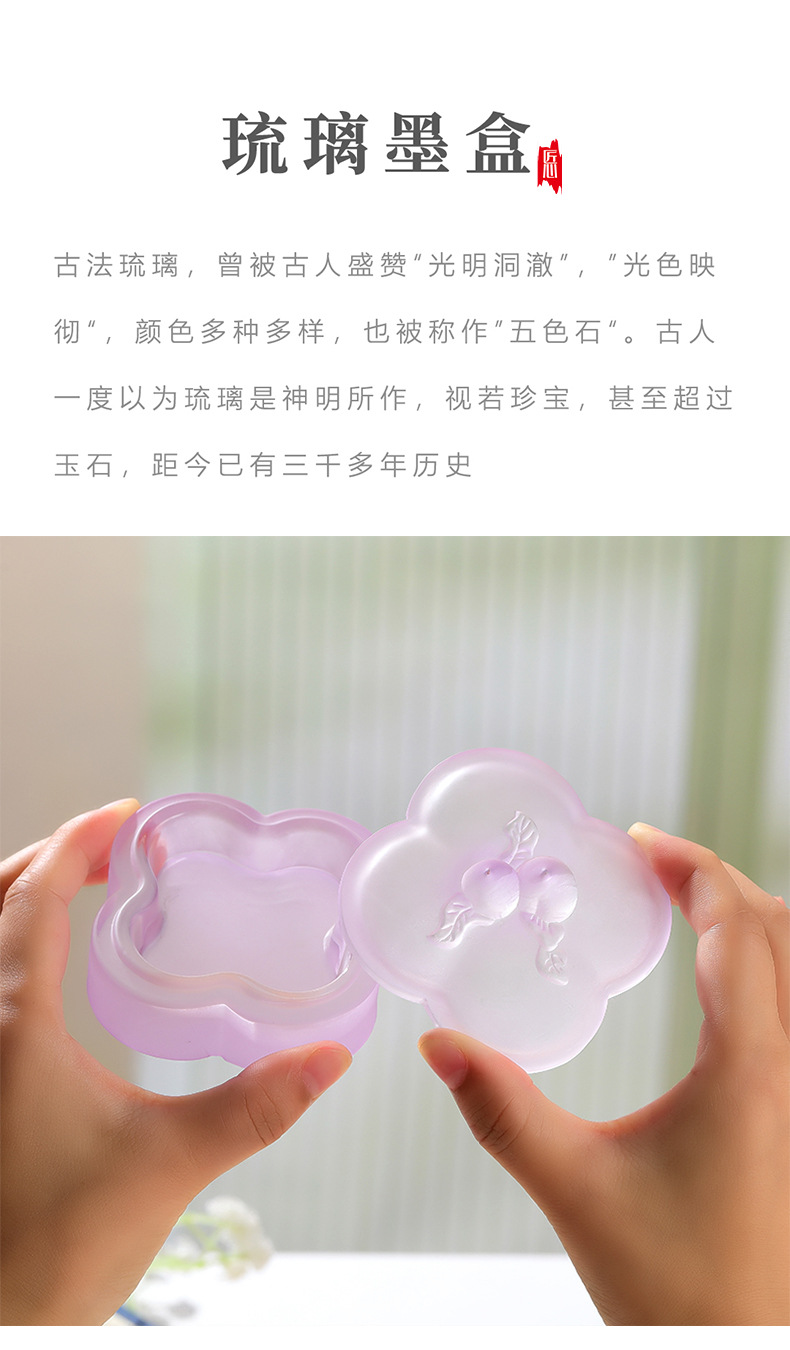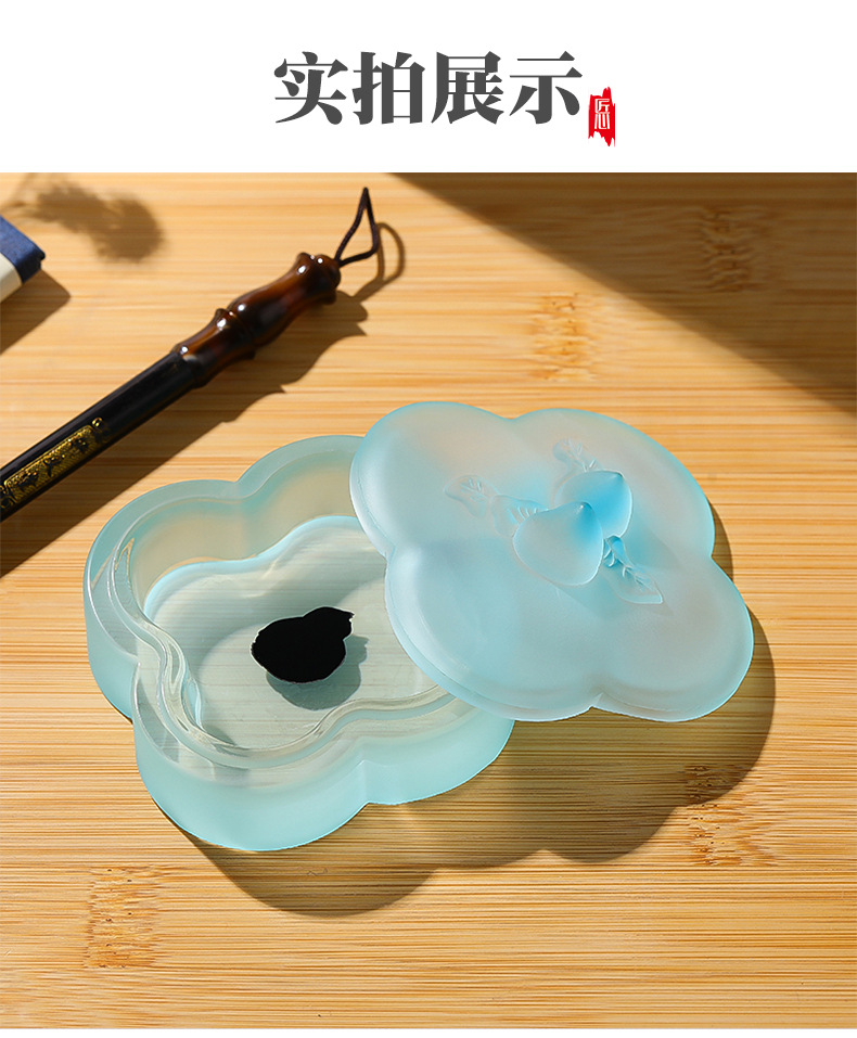 桃枝水晶琉璃墨盒印泥盒墨碟精桃子带盖保湿书法毛笔文房四宝 English | 投诉