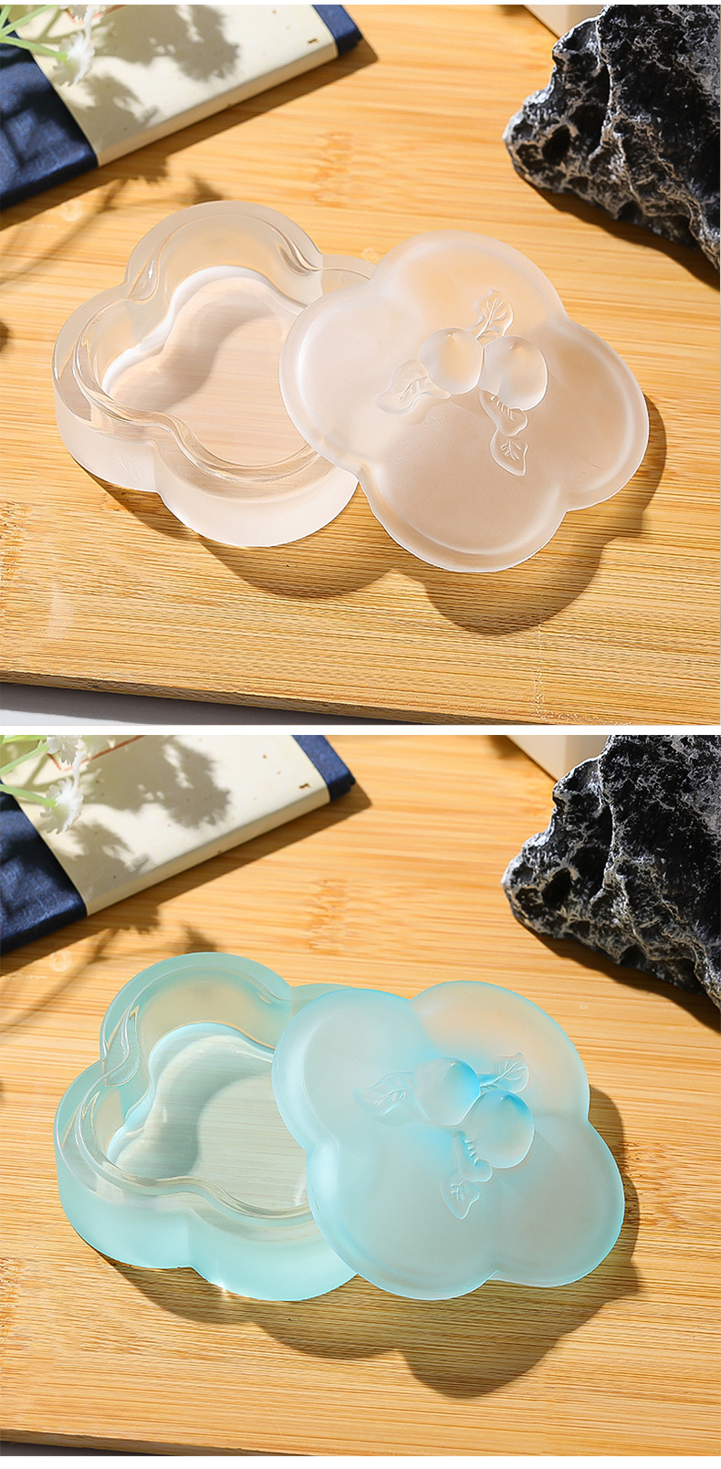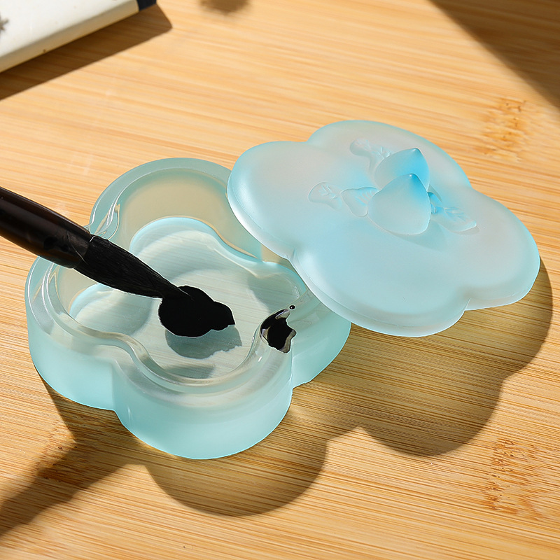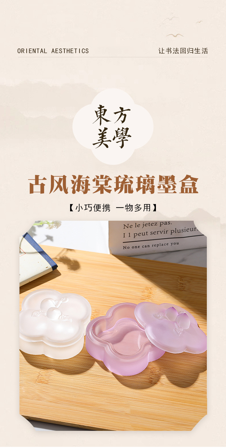 桃枝水晶琉璃墨盒印泥盒墨碟精桃子带盖保湿书法毛笔文房四宝 English | 投诉