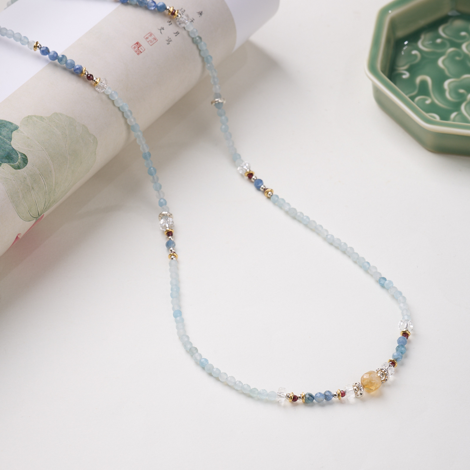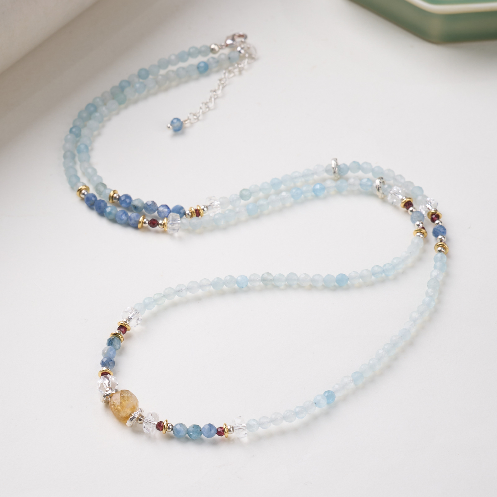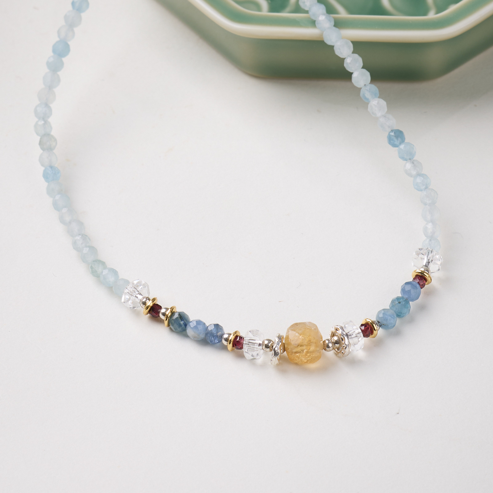 |主材|4MM黄水晶方切,蓝晶石,海蓝宝,石榴石,铜镀金配件等