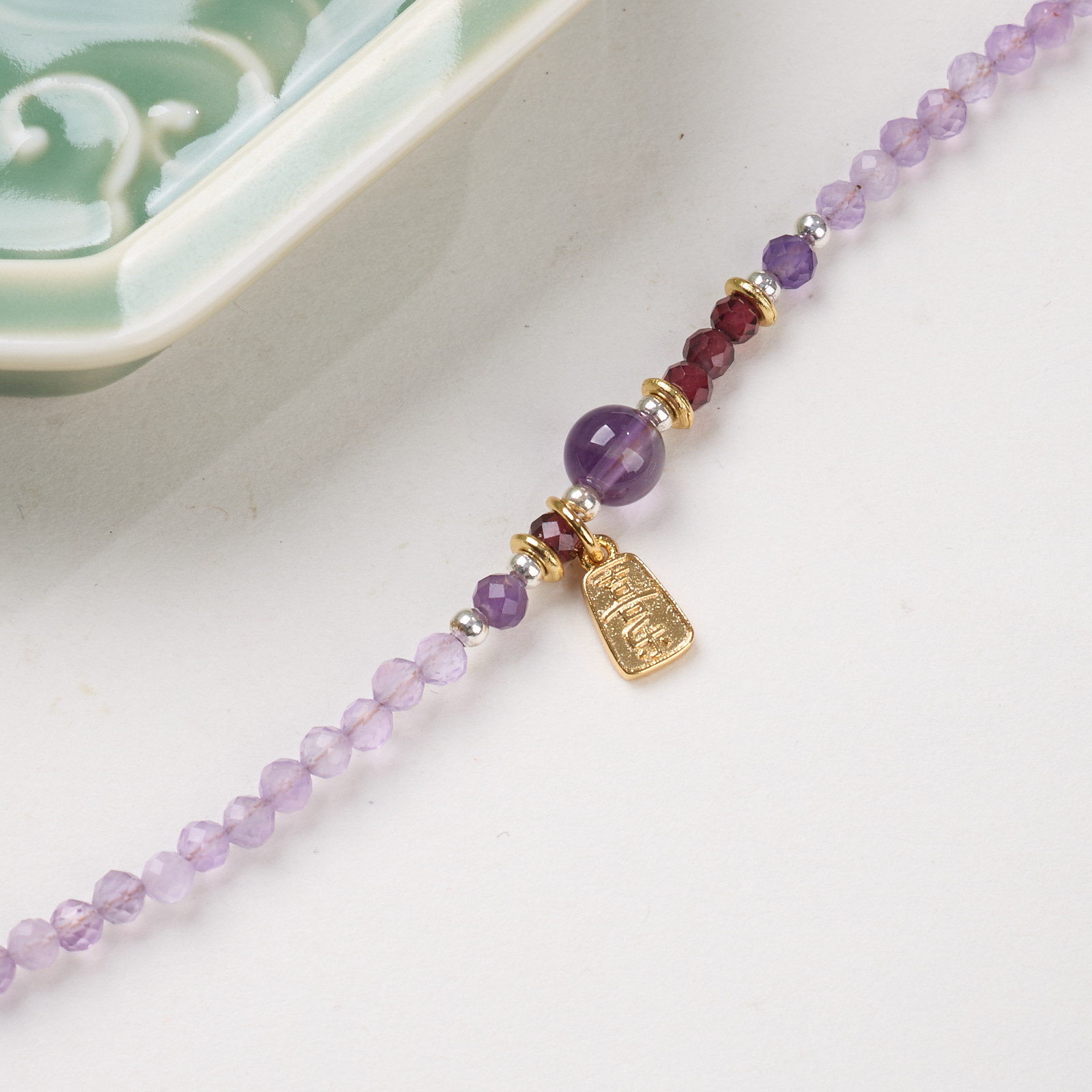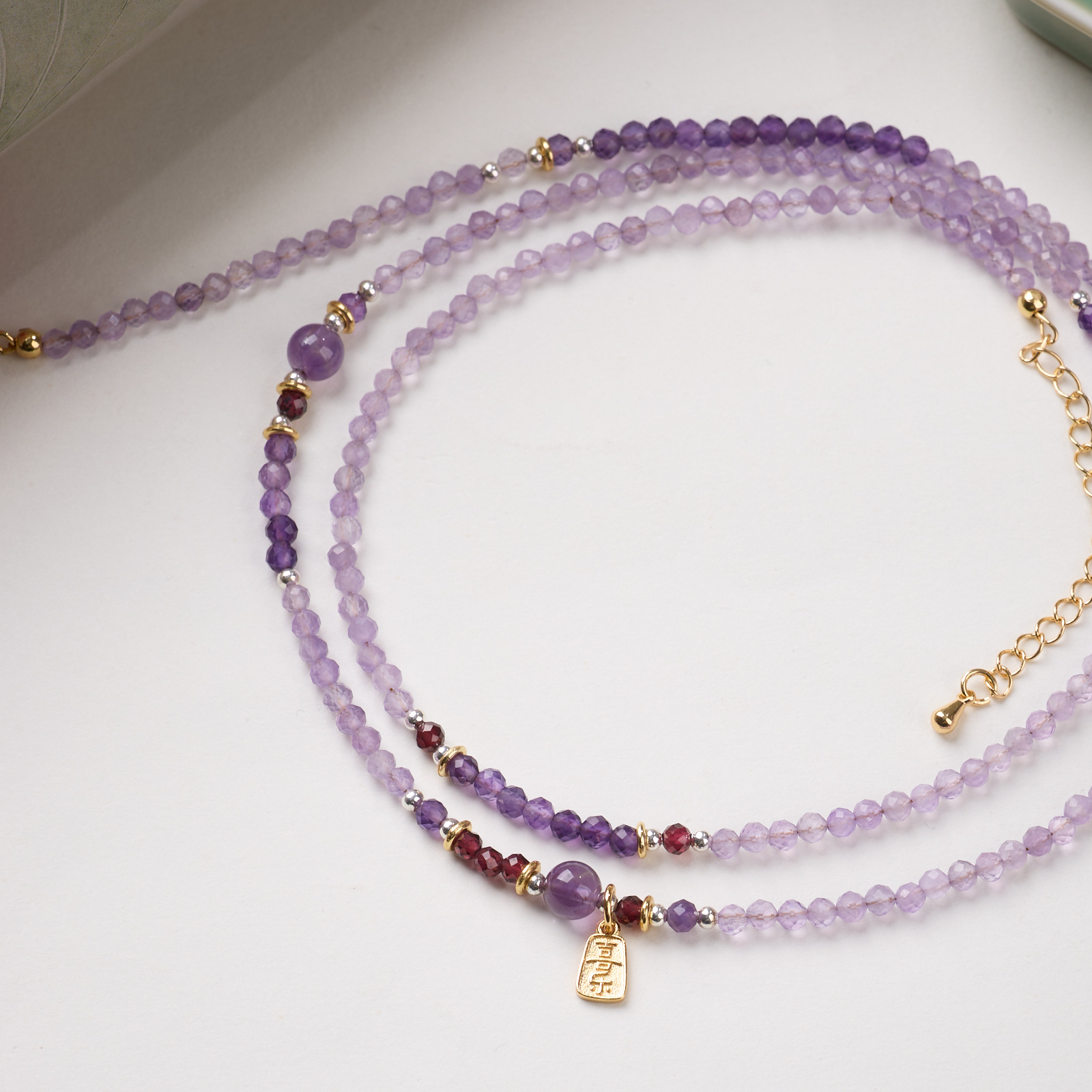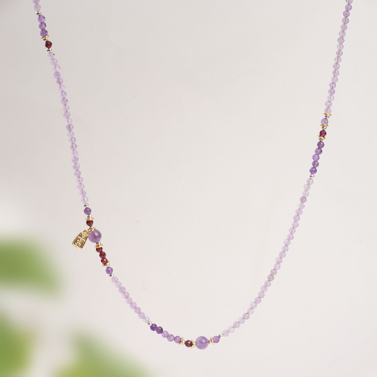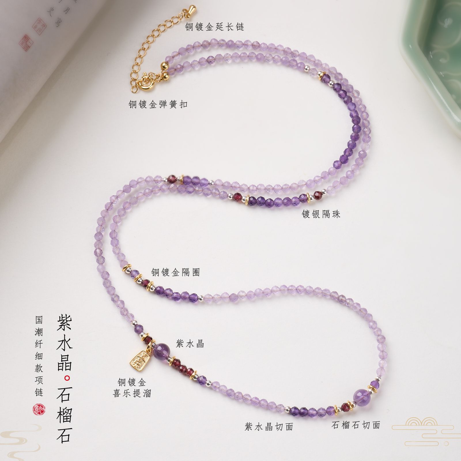 |主材|4MM切面紫水晶,石榴石,喜乐吊坠,铜镀金配件等