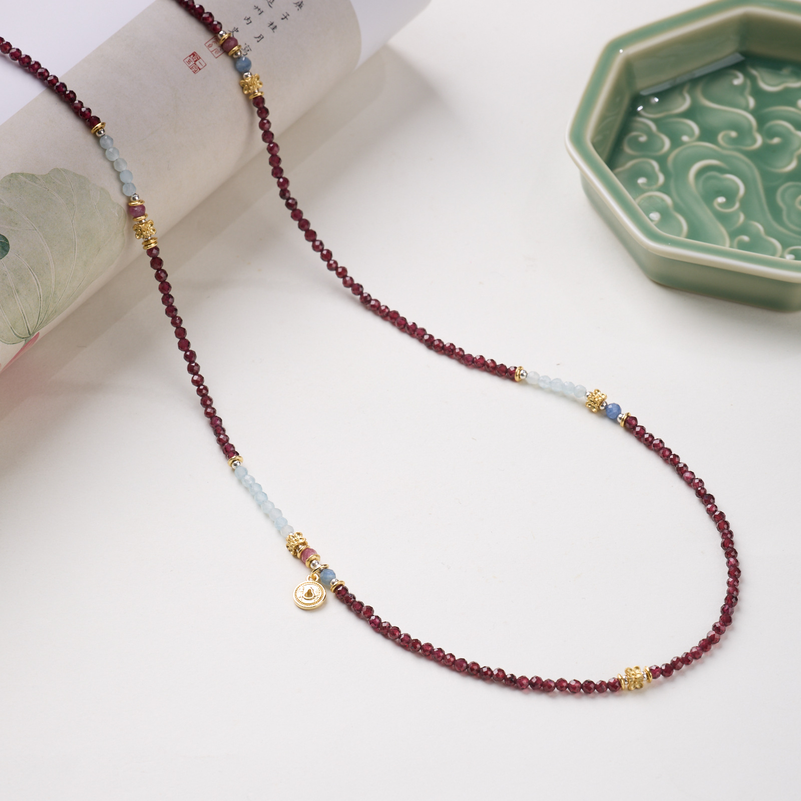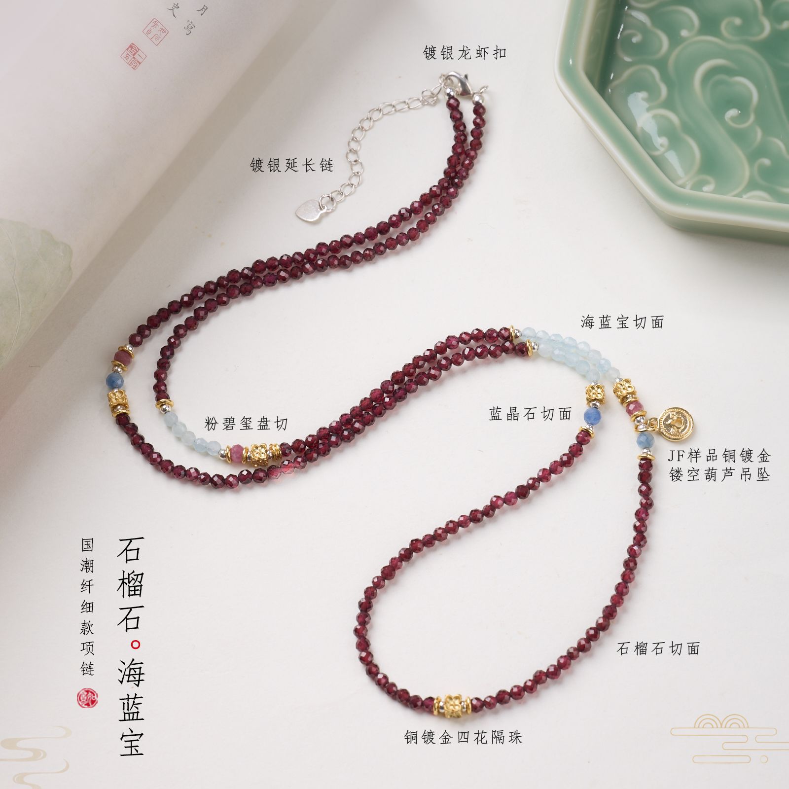 |主材|3MM石榴石,海蓝宝,粉碧玺,葫芦滴溜,铜镀金配件等