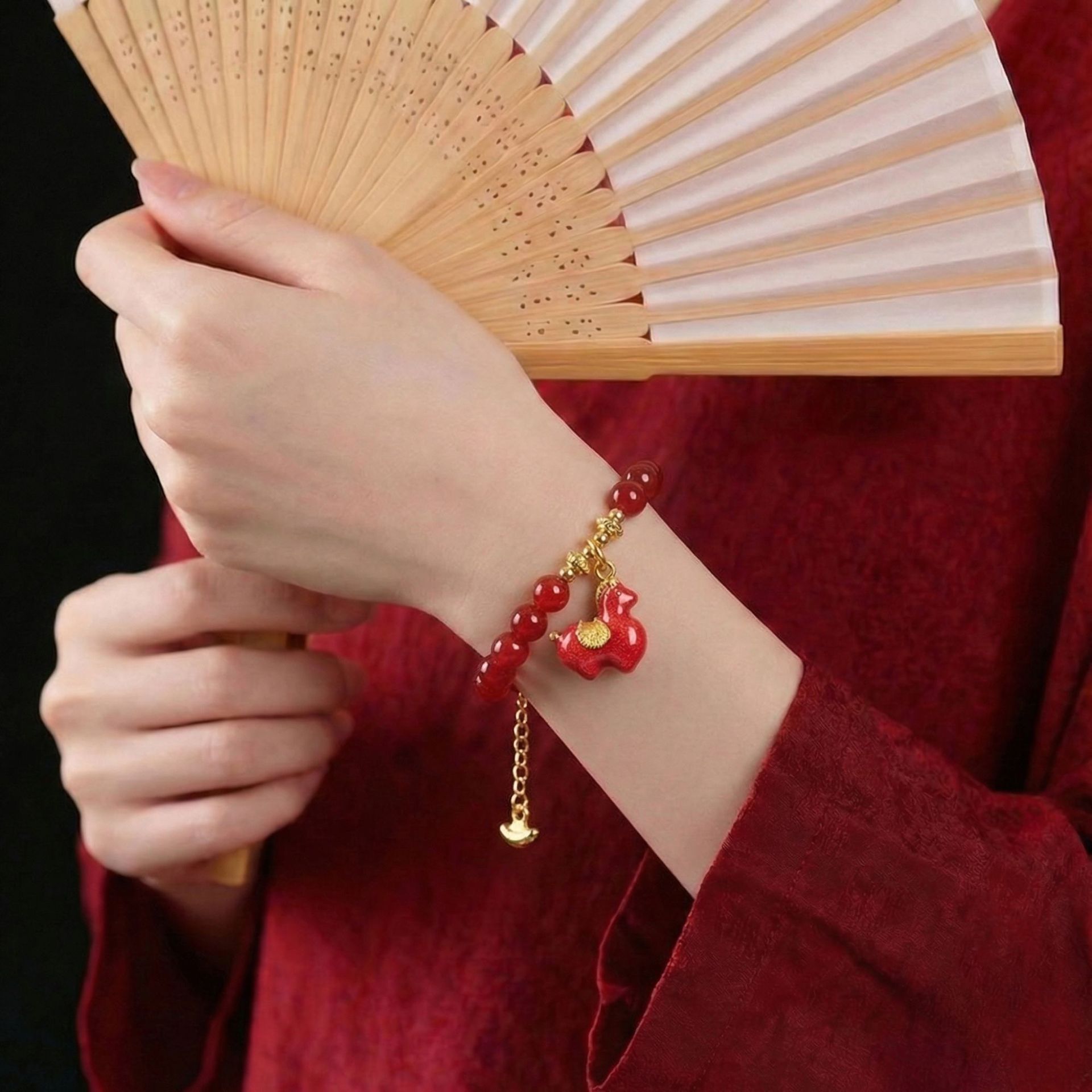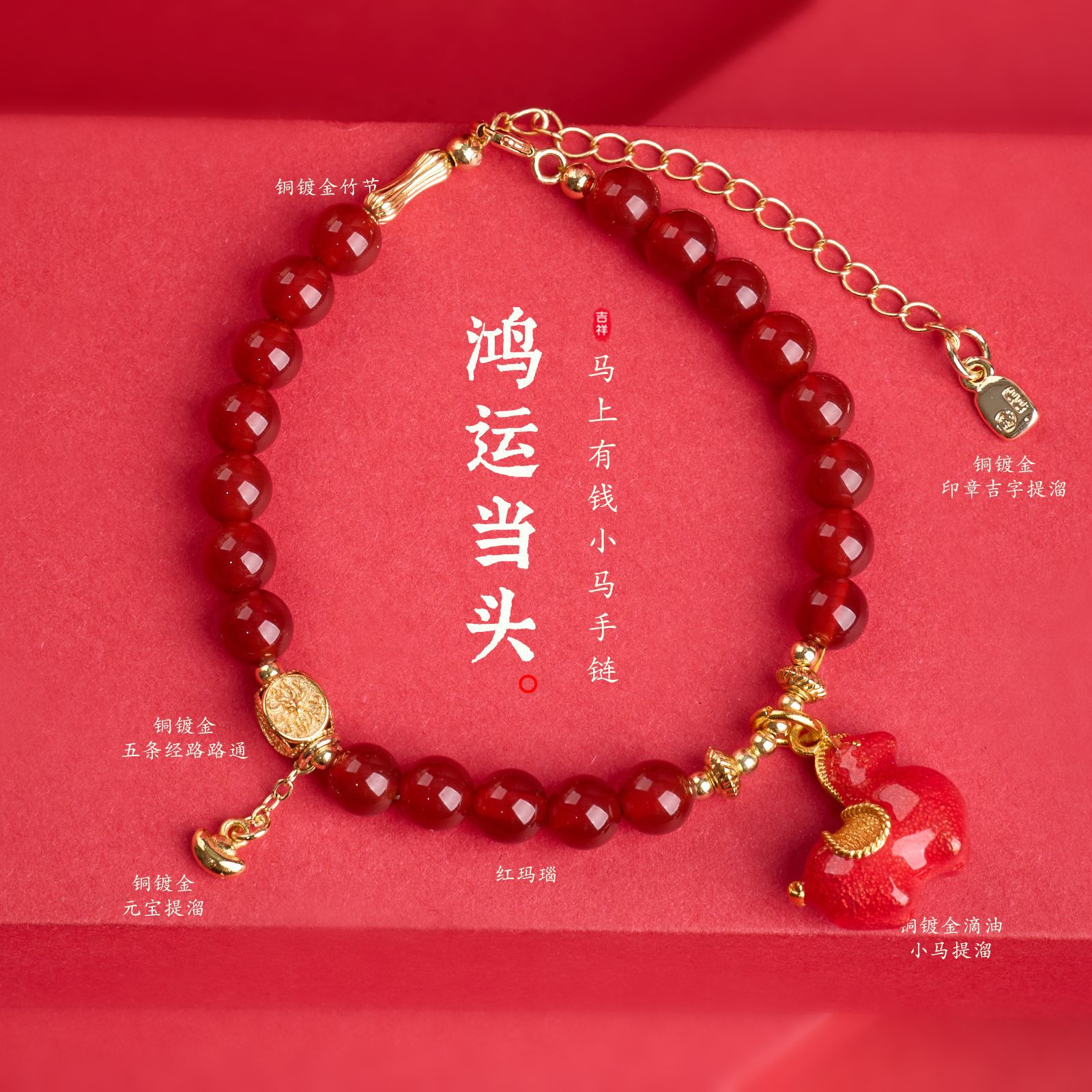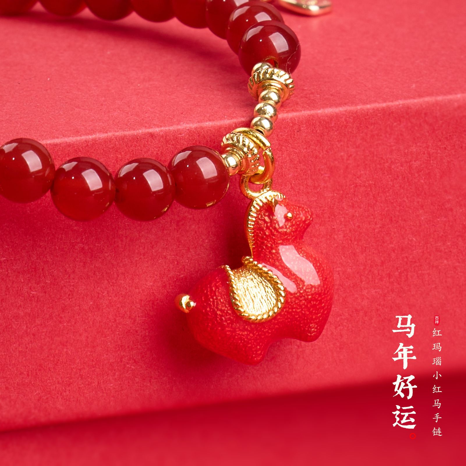 |名称|6MM红玛瑙 元宝扣 小红马 五条经手链