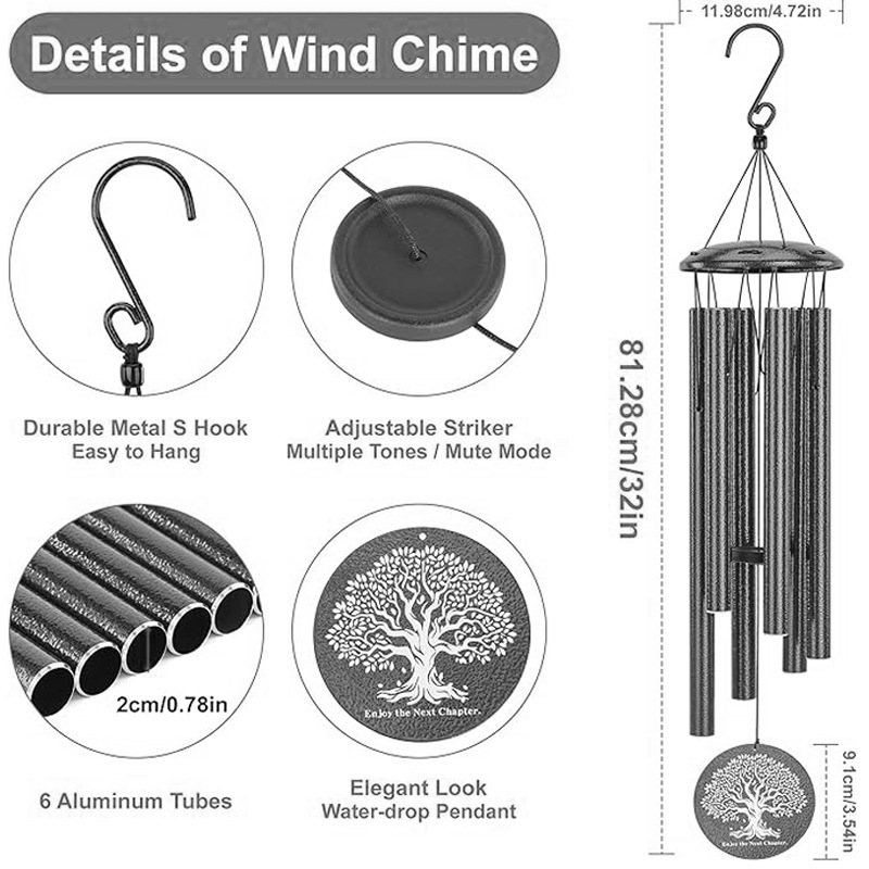 欧美跨境金属32寸音乐风铃 创意家居挂件音乐装饰 黑色纪念风铃