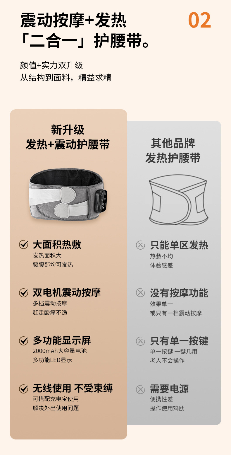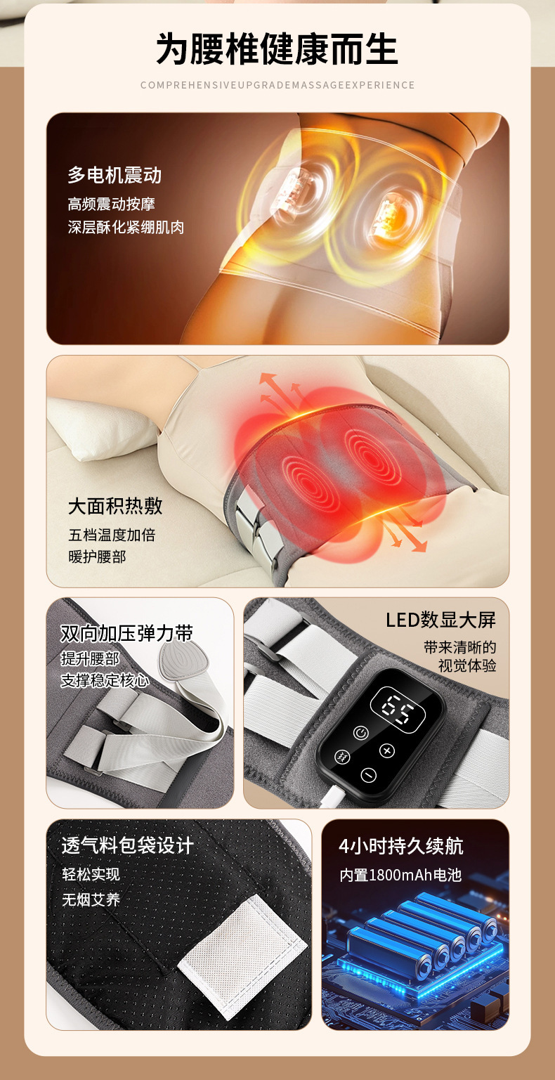 按摩原理: 震动,热敷 品牌: 其他 电源方式: USB 控制方式: 机械式 按摩头个数: 4个及以下 档位: 4档 上市时间: 2025 货号: 电热护腰带 是否跨境出口专供货源: 是 重量: 0.5 kg/个