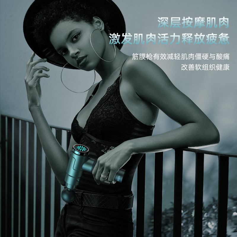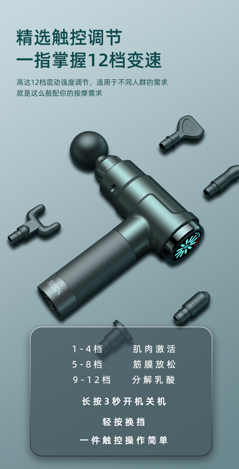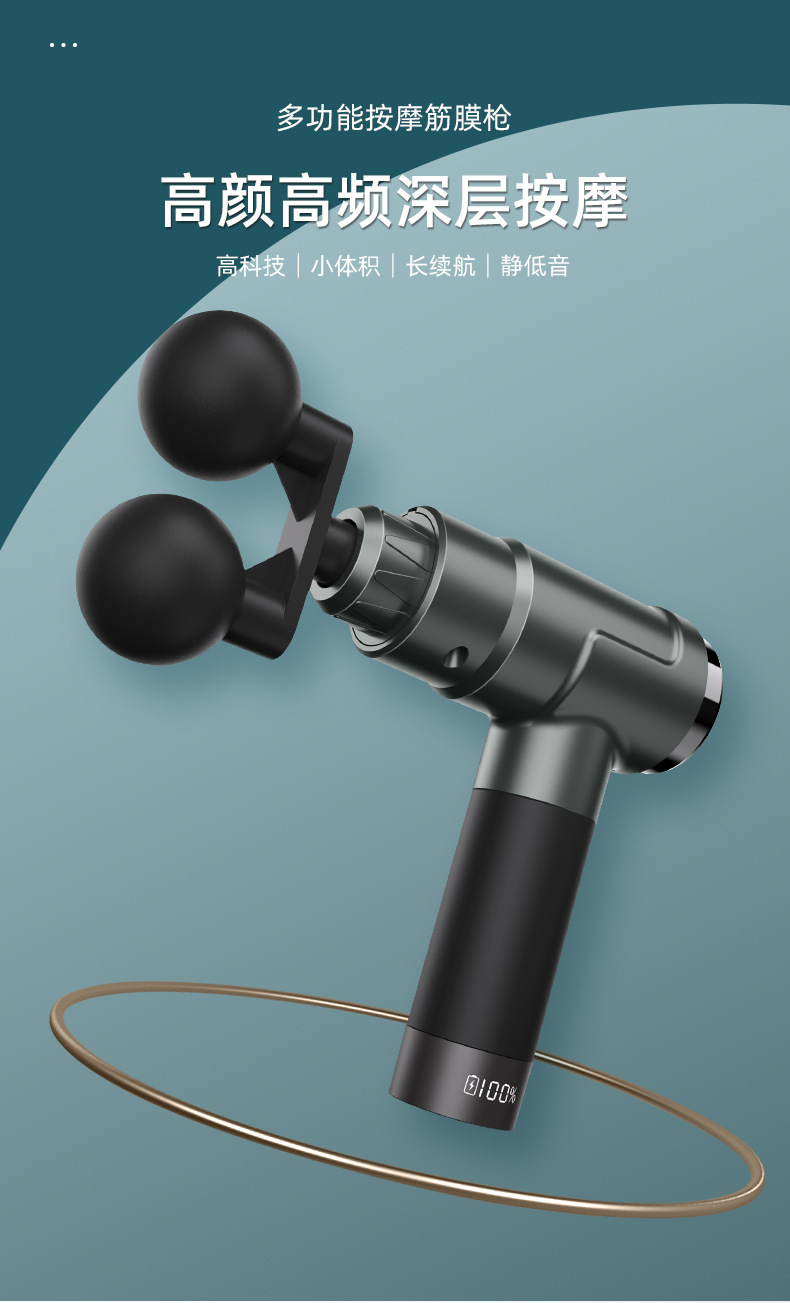 跨境专业指纹屏筋膜枪电动筋膜按摩器实力品牌深度放松双头筋膜抢