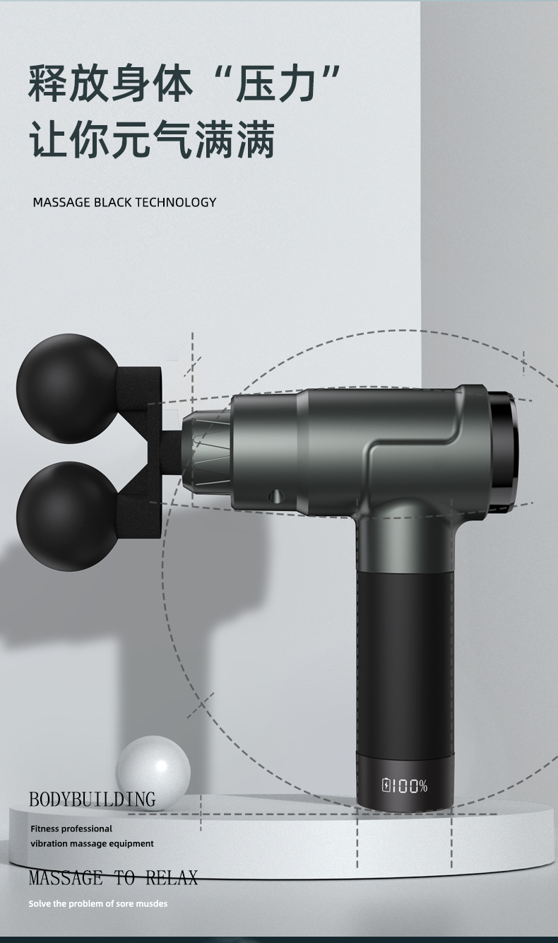 跨境专业指纹屏筋膜枪电动筋膜按摩器实力品牌深度放松双头筋膜抢 English | 投诉