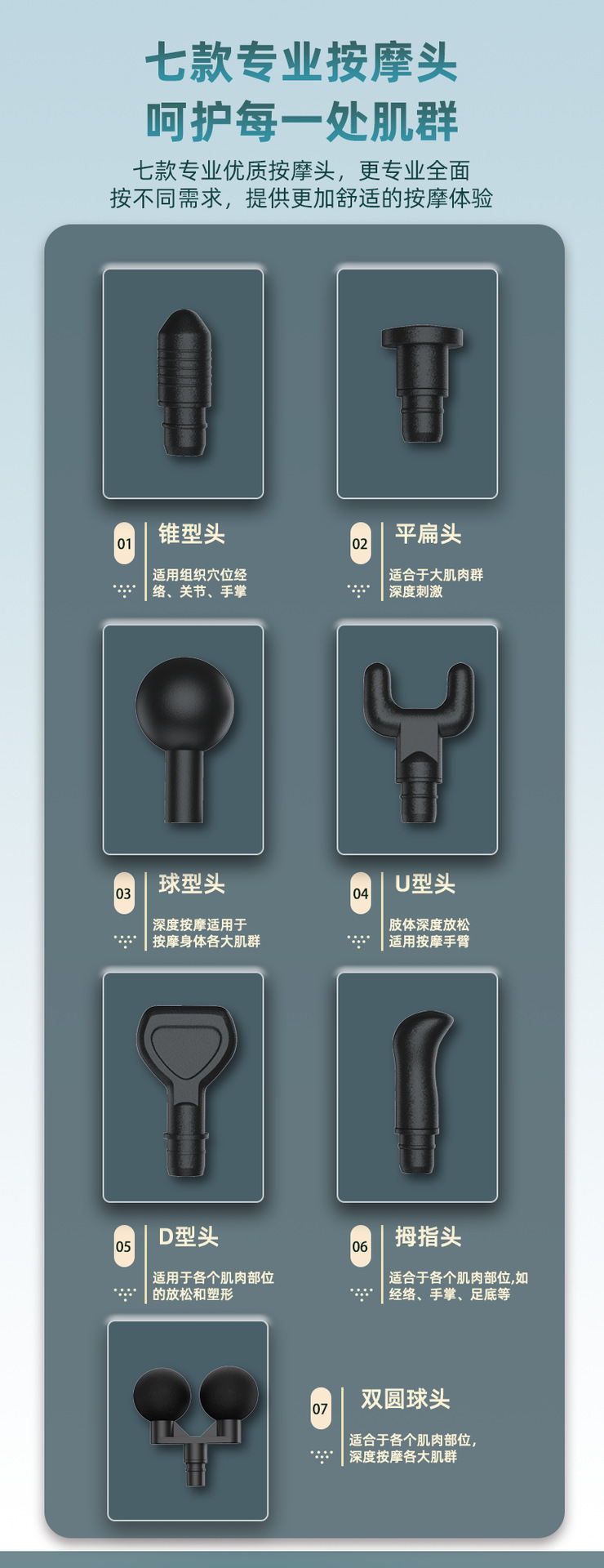 功能: 多档变频 品牌: 其他 电机类型: 有刷电机 档位: 5档以上 按摩头个数: 6个 是否内置电池: 内置电池 颜色: 蓝色,灰色,绿色 续航时长: 12h以上 重量: 0.5 kg/件