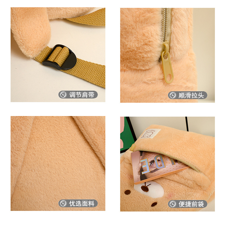 材质: 毛绒 功能: 透气,减负 里料质地: 涤棉 品牌: 其他 背负系统: 气垫背带 图案: 动物 适用学龄: 中班 适用性别: 中性/男女均可 颜色: 棕色 货号: SS-6608 风格: 摩登潮酷 流行元素: 车缝线,撞色 形象: - 有可授权的自有品牌: 否 上市年份季节: 2023年冬季 适用场景: 学校教育 重量: 0.5 kg/个