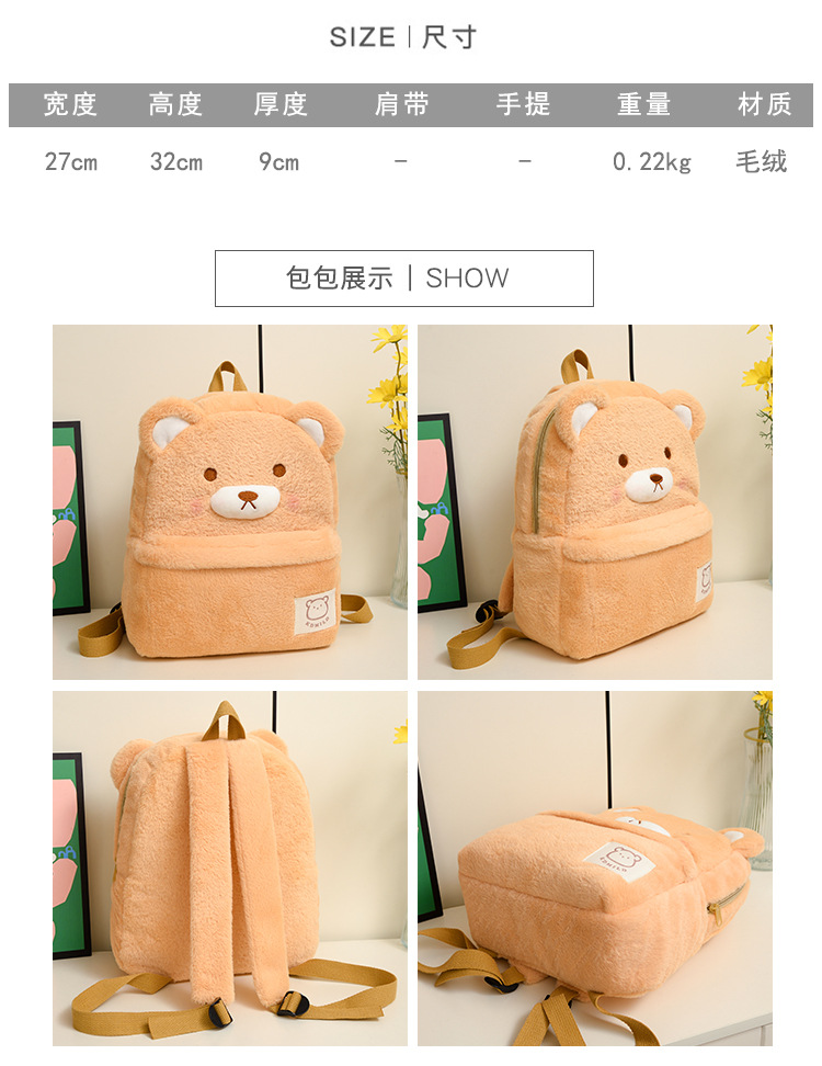 秋冬新款儿童毛绒书包幼儿园男女宝宝可爱卡通双肩背包小班中大班 English | 投诉