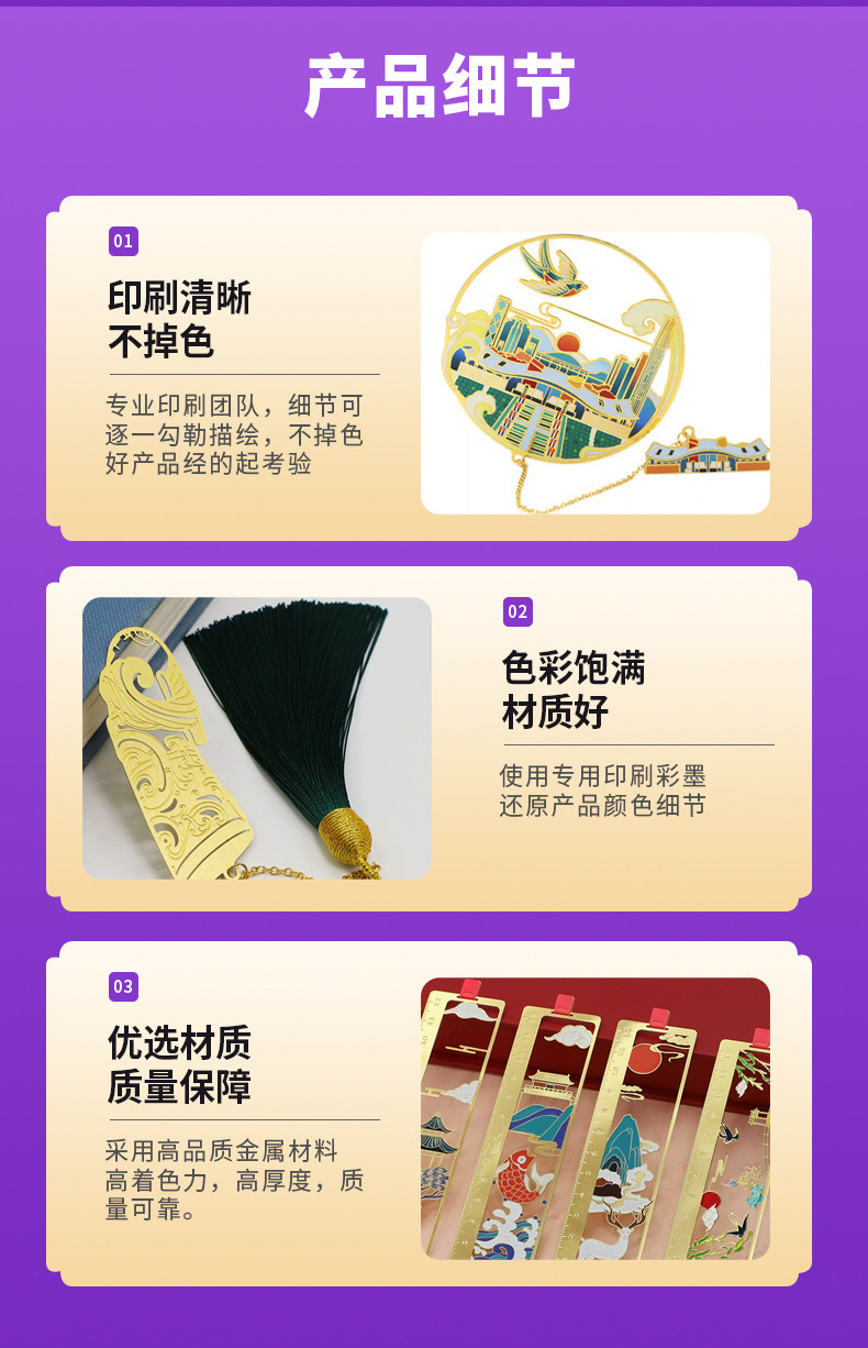 材质: 金属 品牌: 协兴工艺 款式: 自制 风格: 高级感 货号: sqdz0805 颜色: 金属书签定制 尺寸: 常规 图案特点: 中国风 是否专利货源: 否 事宜场所: 景区、博物馆周边文创、学校 重量: 0.317 kg/个