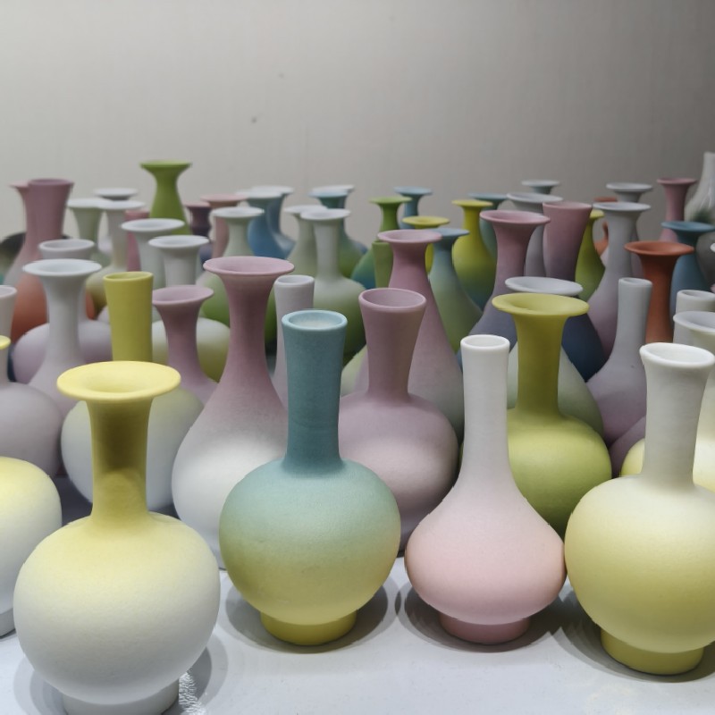 渐变色磨砂釉景德镇手工陶瓷创意花瓶桌面小摆件花器插干花礼物 English | 投诉