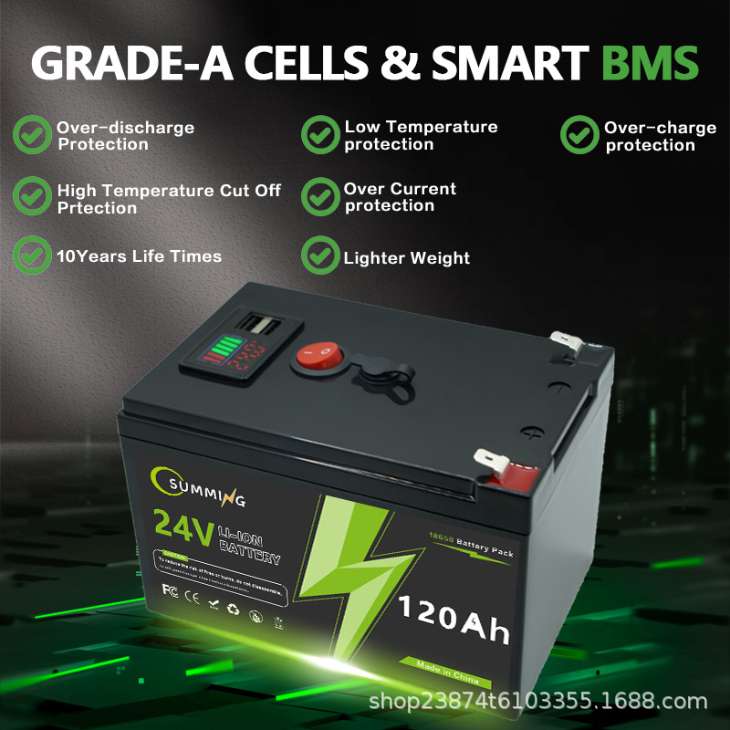 29.4V 100Ah Lithium Battery,Built-in BMS,4000+ Cycles Rechargeable Lithium Battery,