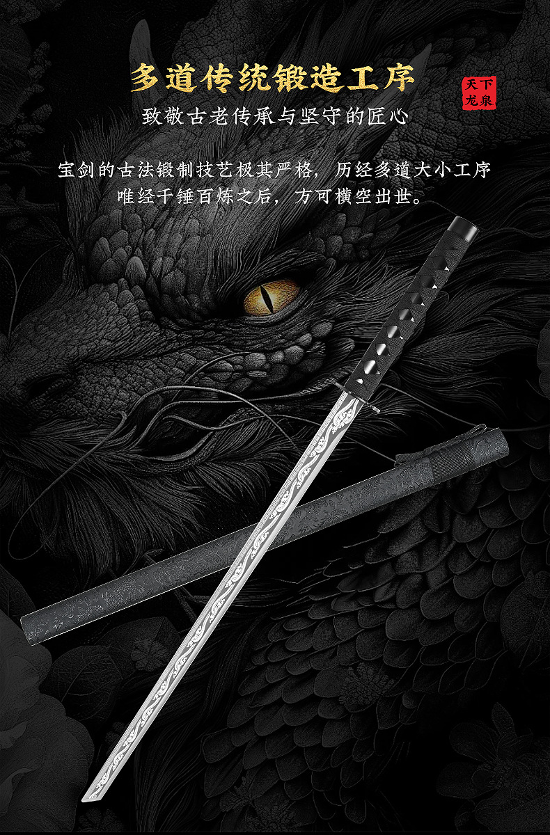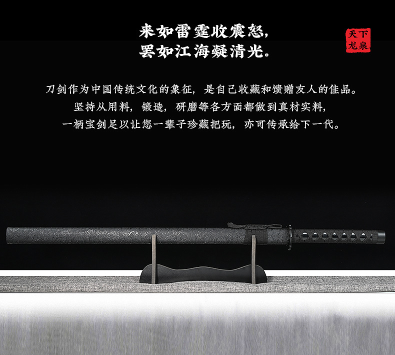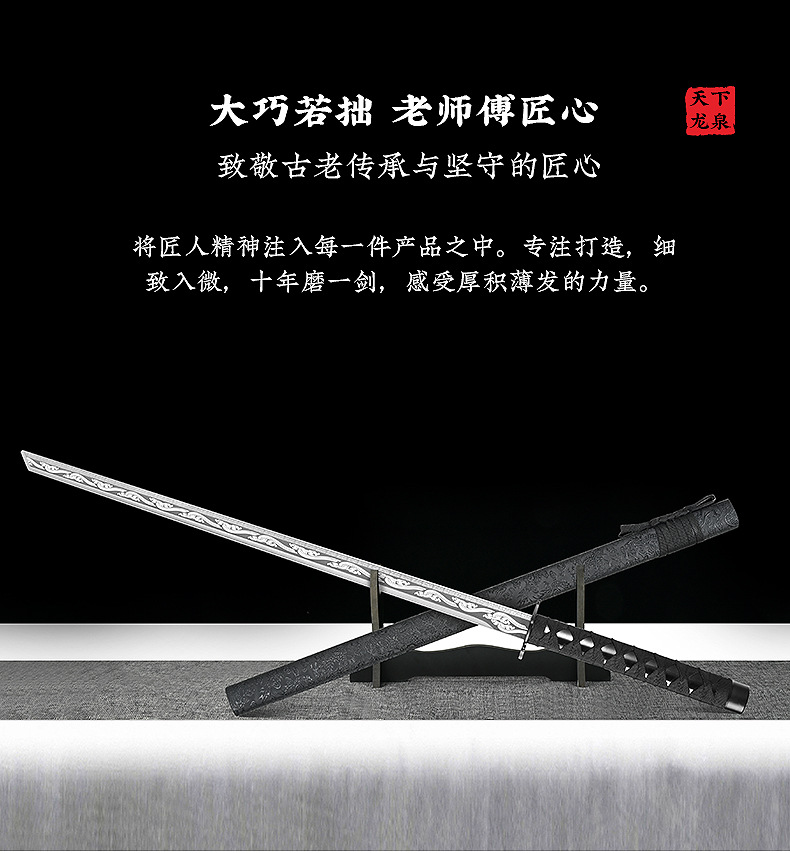 龙泉市高锰钢一体影视剧刀具摆件龙纹剑身墨龙直刀100cm未开刃 投诉