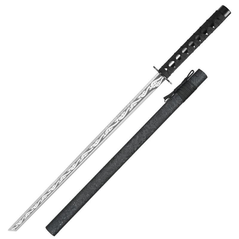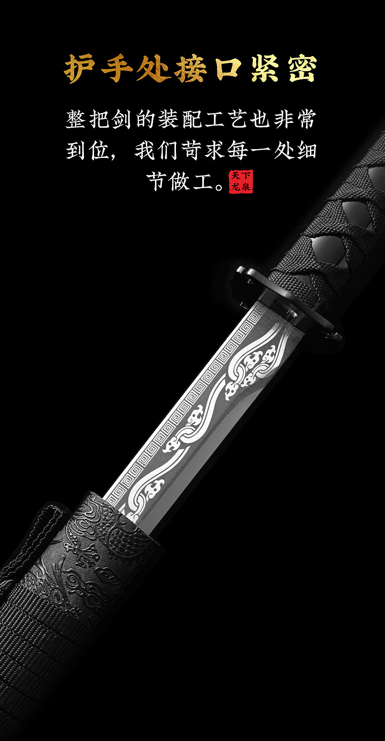 龙泉市高锰钢一体影视剧刀具摆件龙纹剑身墨龙直刀100cm未开刃