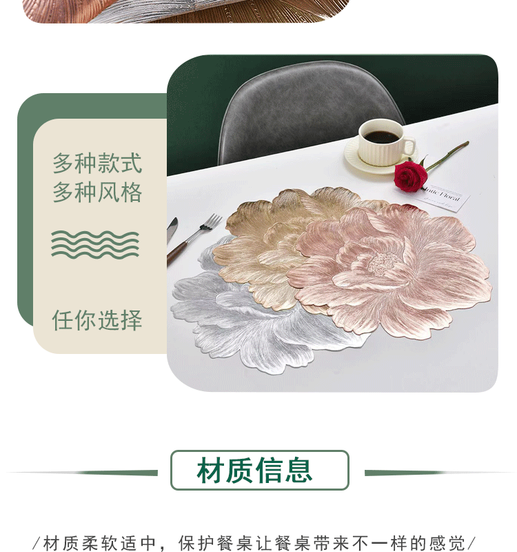 餐垫北欧防滑易清洁PVC桌面隔热防烫纯色西餐垫若惜佳 English | 投诉