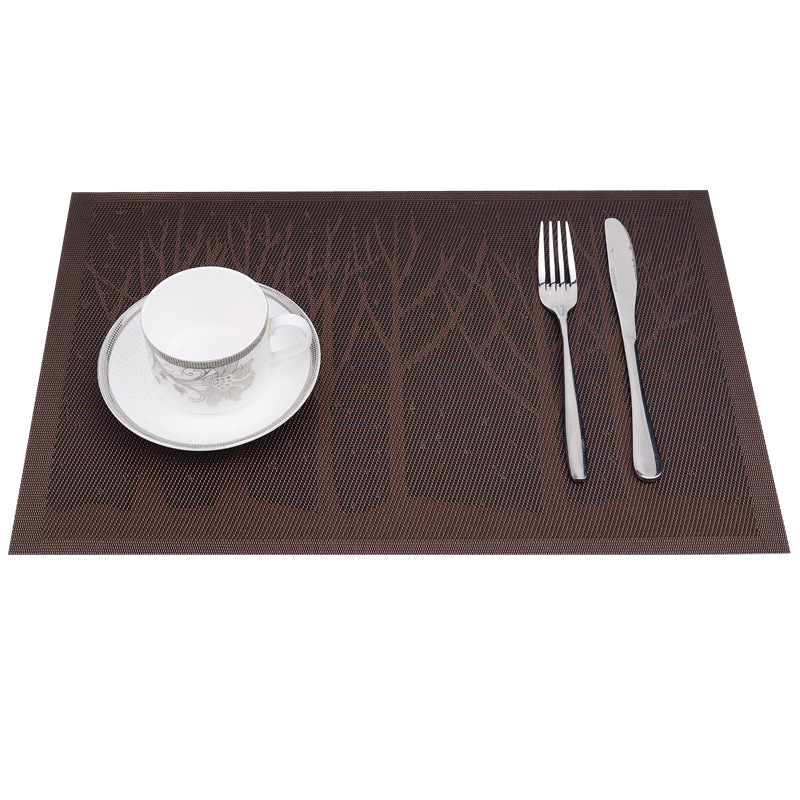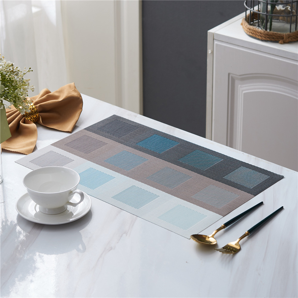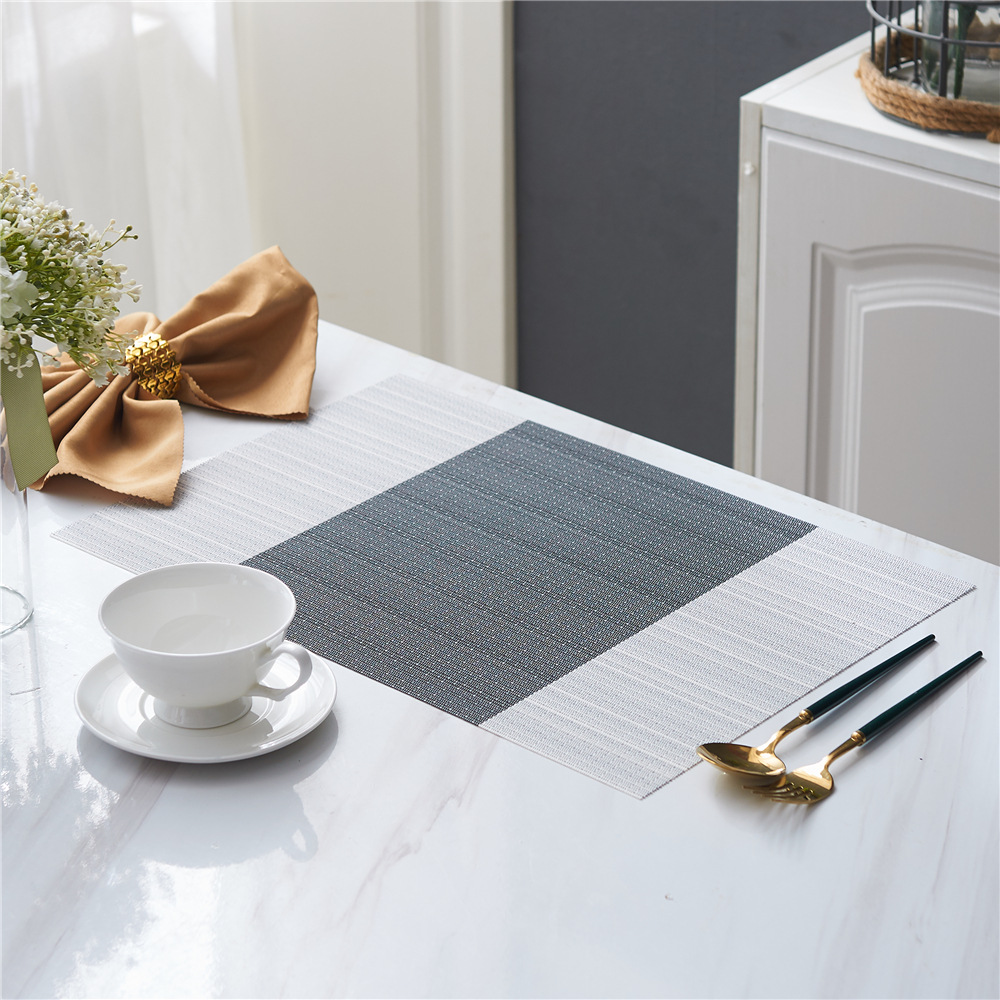 特斯林餐垫以PVC为主要材料,特斯林餐垫耐热耐磨防滑、阻燃。特斯林餐垫有长形和方形设计,放在桌面上垫杯子、餐具等,可防止餐桌打滑、烫坏台面,同时又兼具美观。特斯林餐垫简洁大方、素净高雅,亦可放在花瓶、烟灰缸下做衬托。