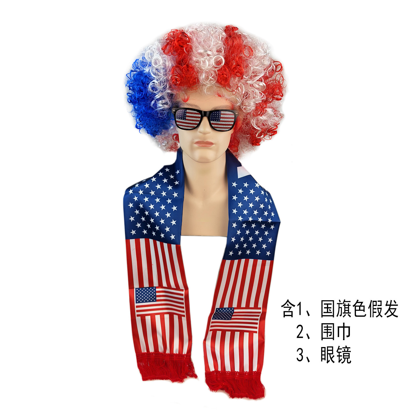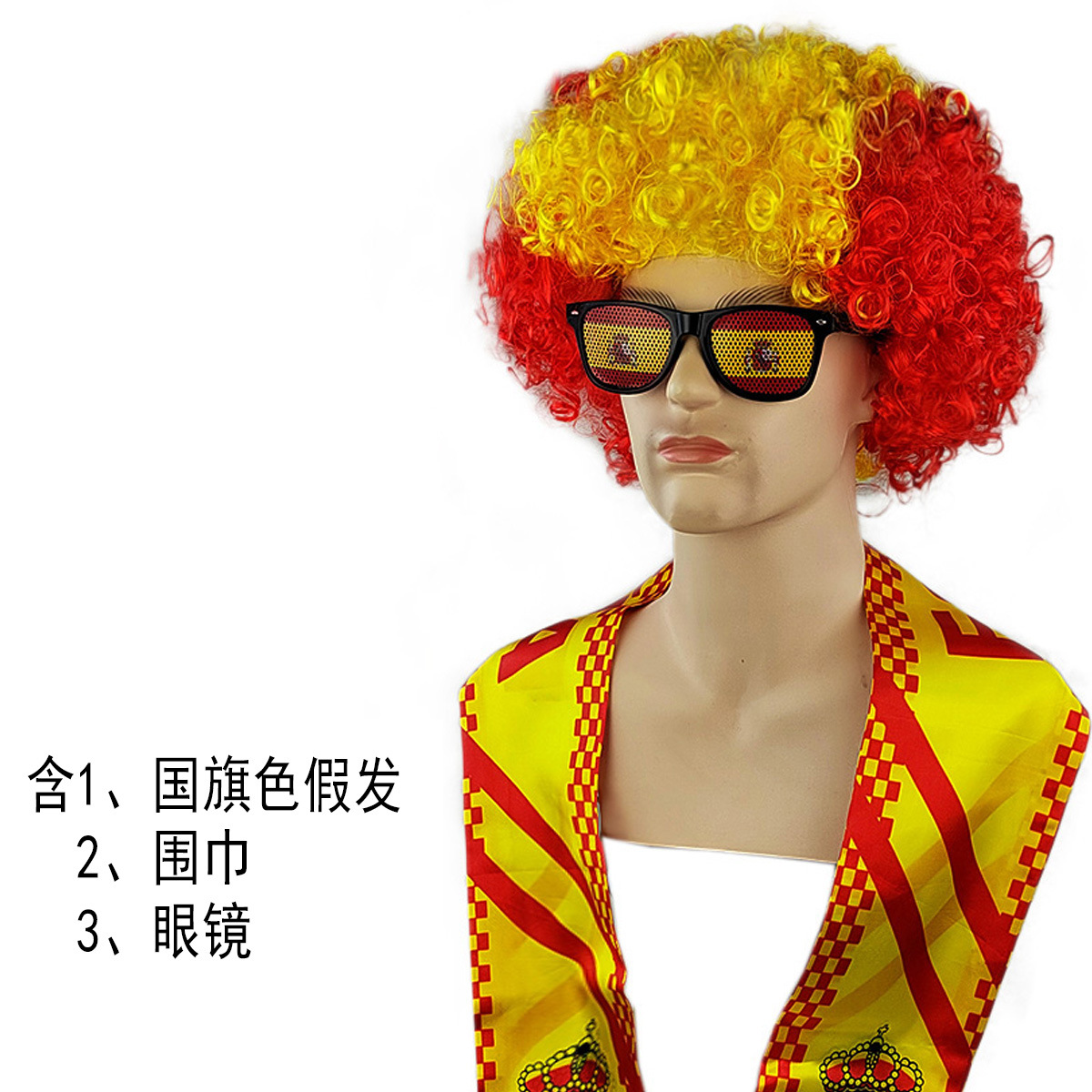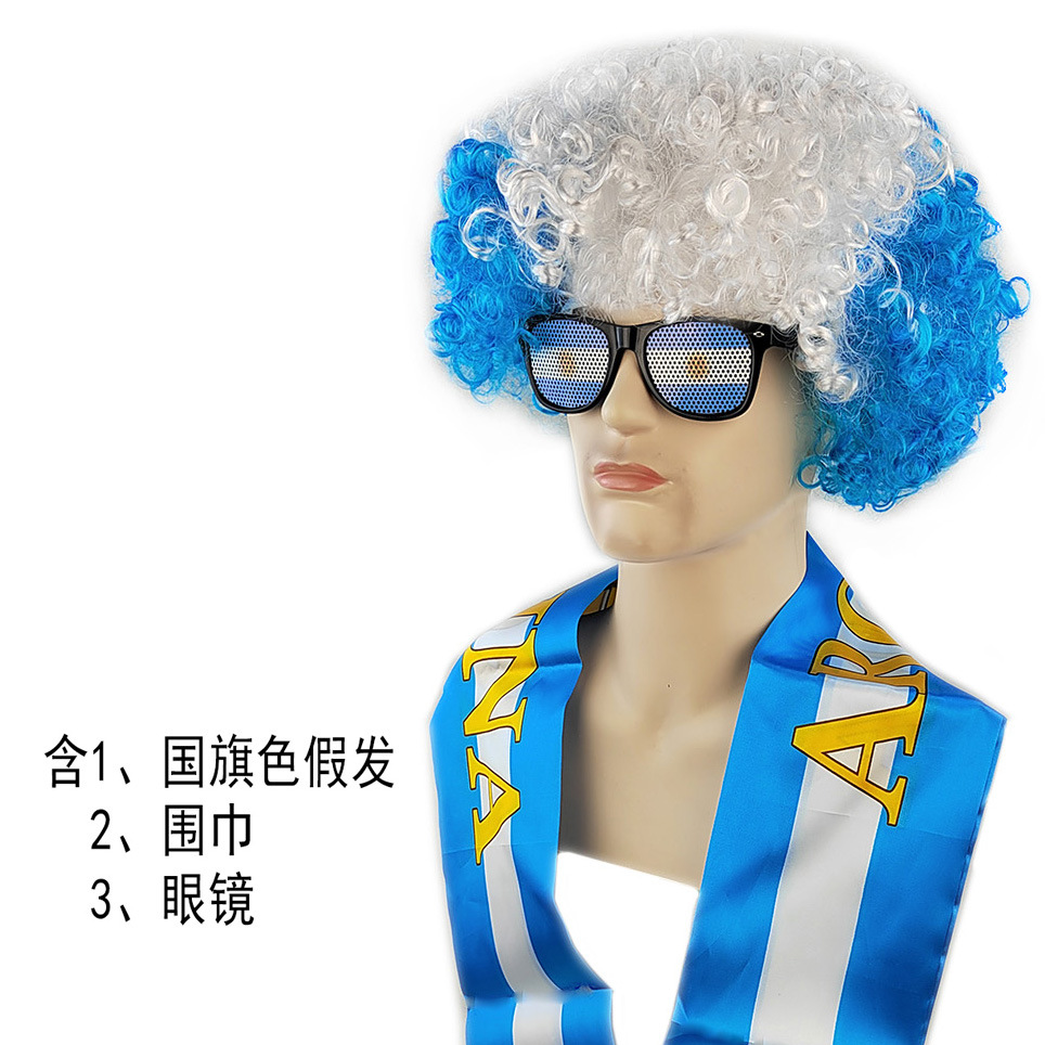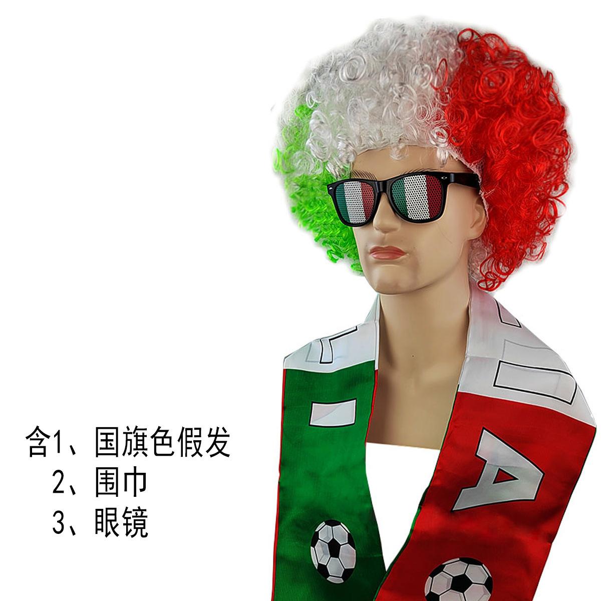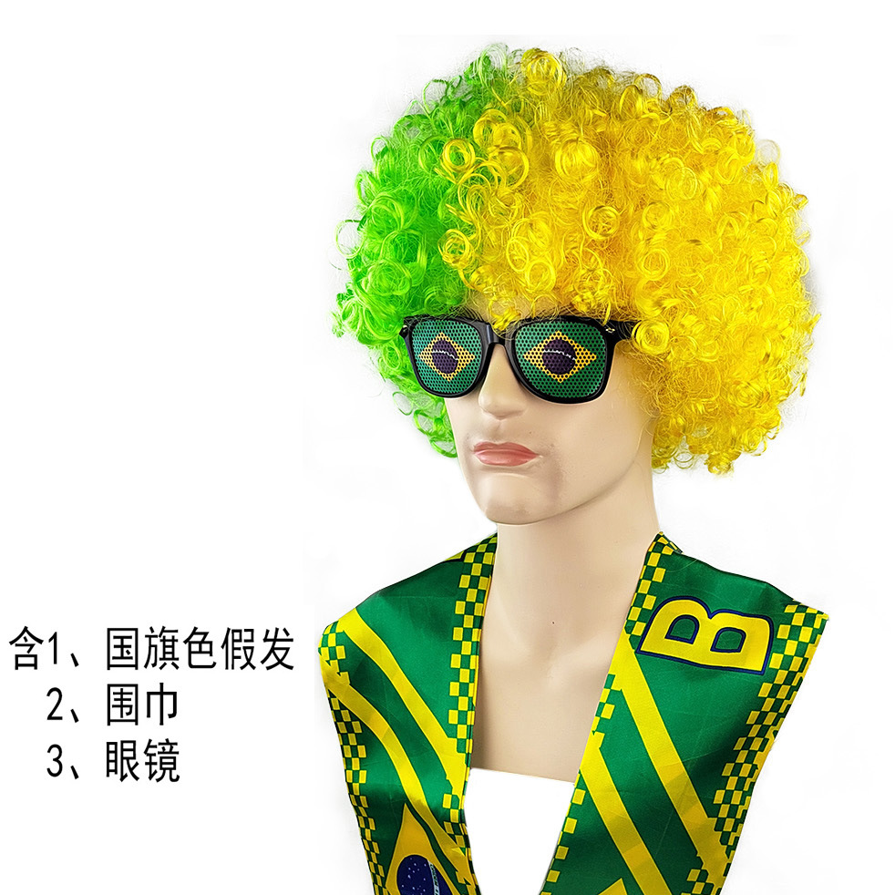 含国旗色假发1个,国家队围巾1个,国旗色墨镜1个