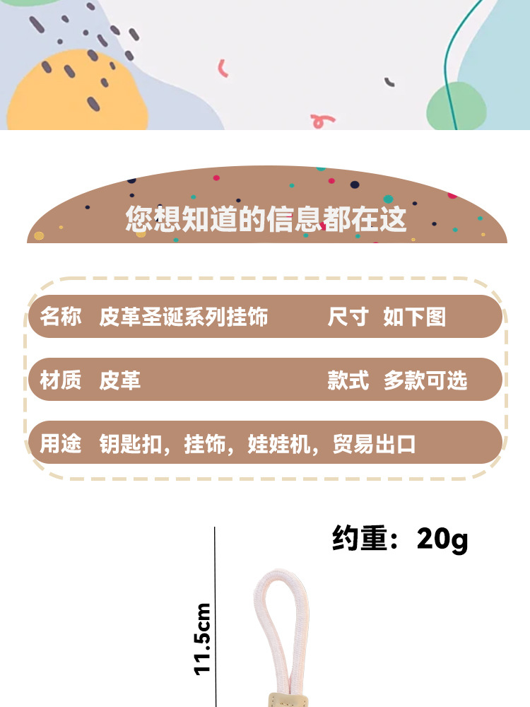 材质: pu 钥匙配饰分类: 钥匙扣 风格: 可爱风 品牌: 萌创 货号: MC皮革圣诞系列25-12-3 包装: 普通包装 适用送礼场合: 婚庆,生日,满月,旅游纪念,毕业,乔迁, 是否专利货源: 否 颜色: 皮革圣诞-红圣诞老人,皮革圣诞-咖圣诞老 适用送礼关系: 晚辈,情侣,夫妻,同事,朋友,长辈,孩子 送礼用途: 积分换购礼品,商务礼品,广告礼品,促销赠 是否属于礼品: 是,商务礼品 是否IP授权: 否 适用节日: 圣诞节,情人节,春节,父亲节,母亲节,教 重量: 3.0 kg/件