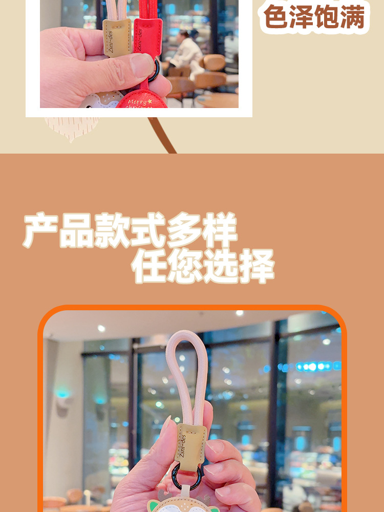 创意皮革卡通圣诞老人钥匙扣可爱圣诞节圣诞鹿挂件男钥匙链可爱风 English | 投诉