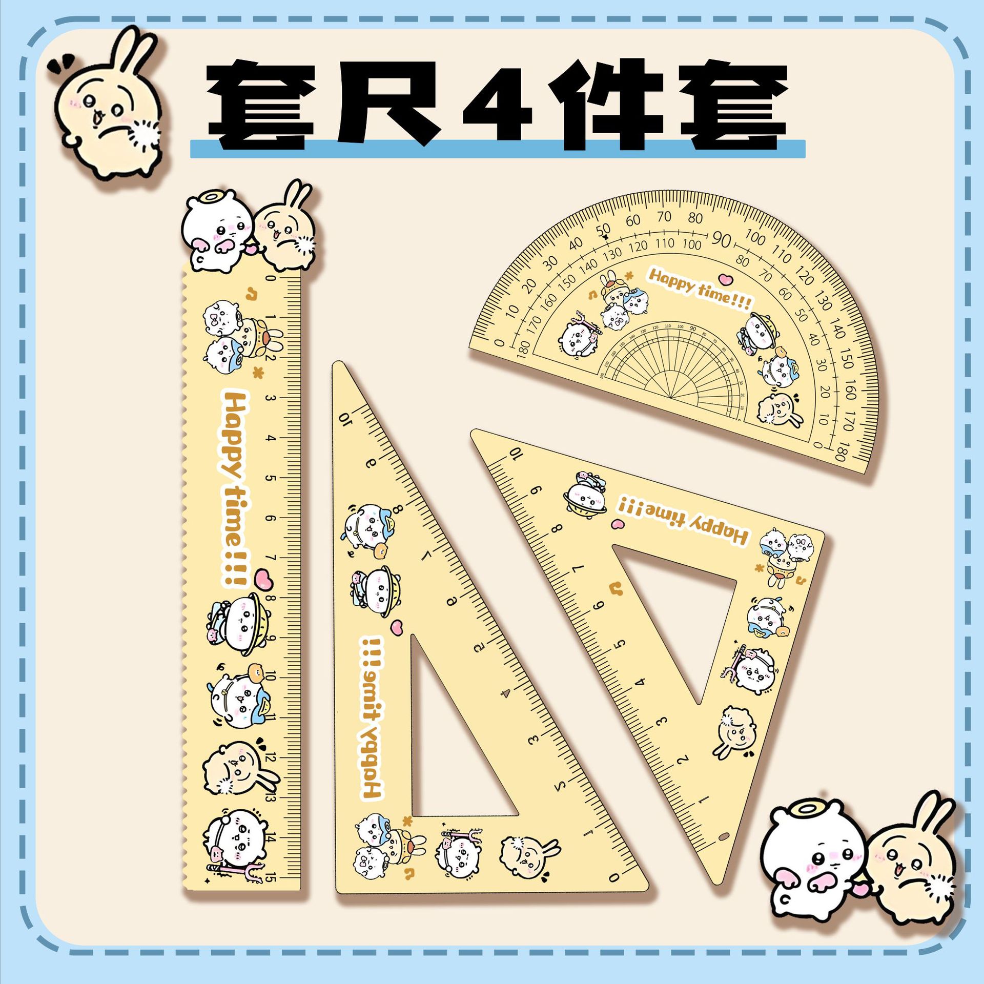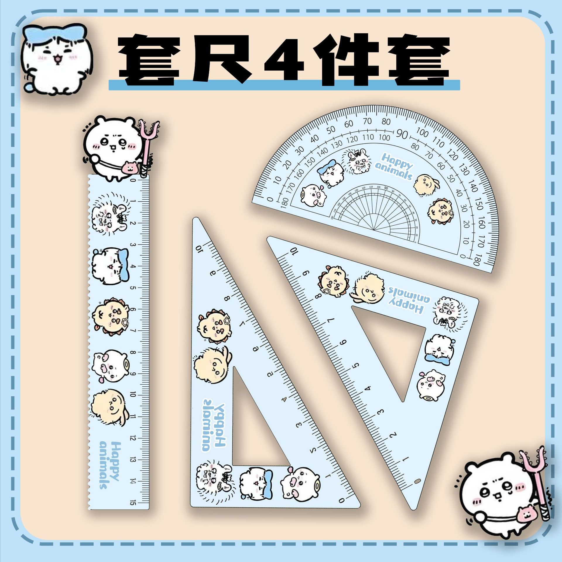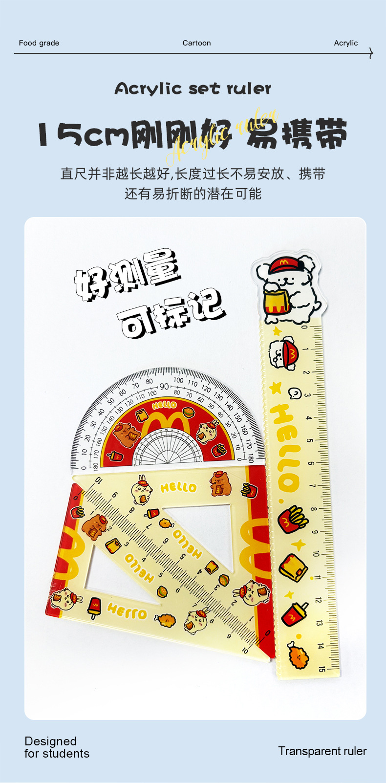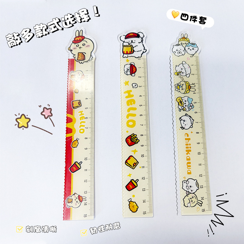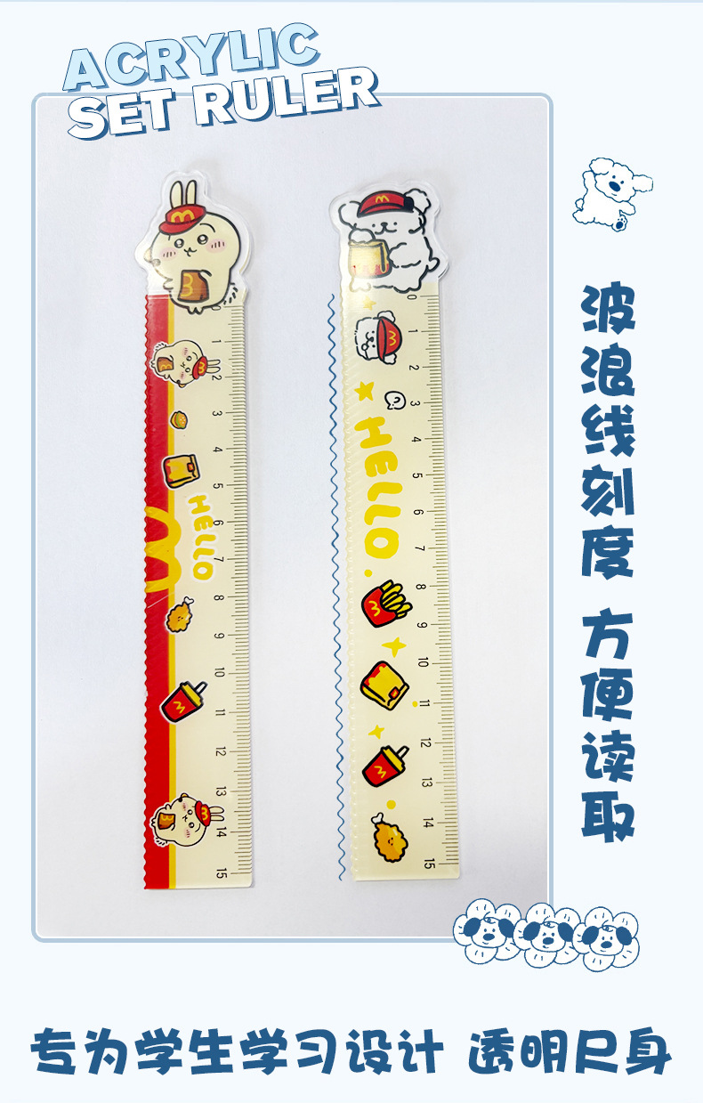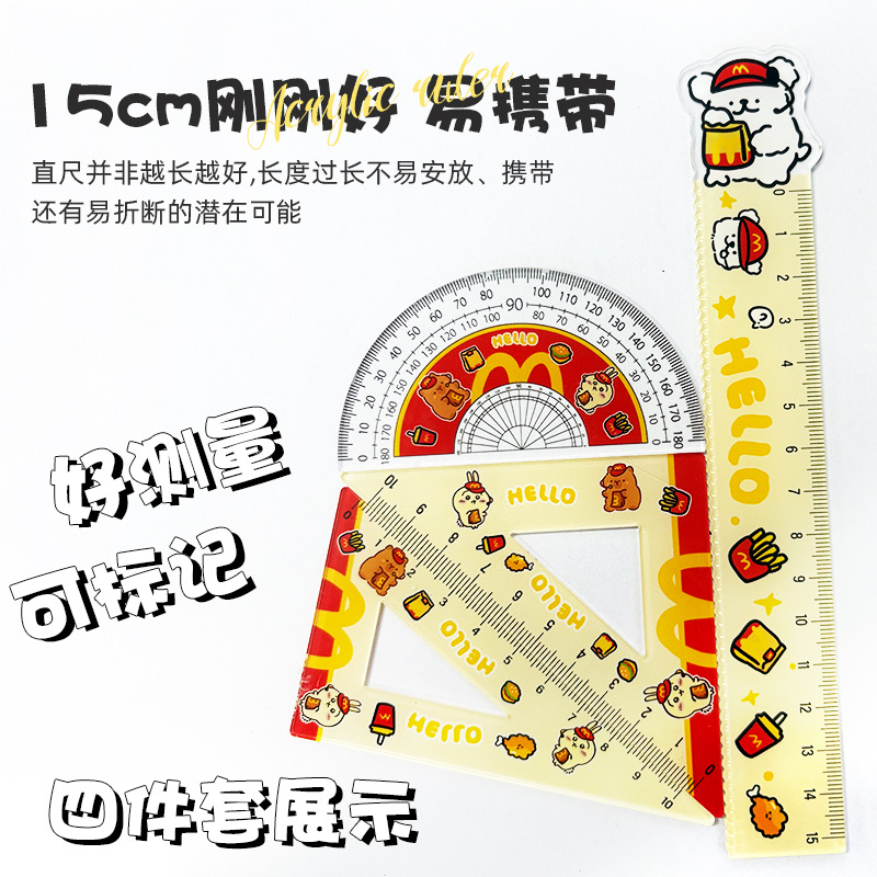 厂家直销亚克力15cm尺子四件套可爱三小只学生卡通学习文具套装 投诉
